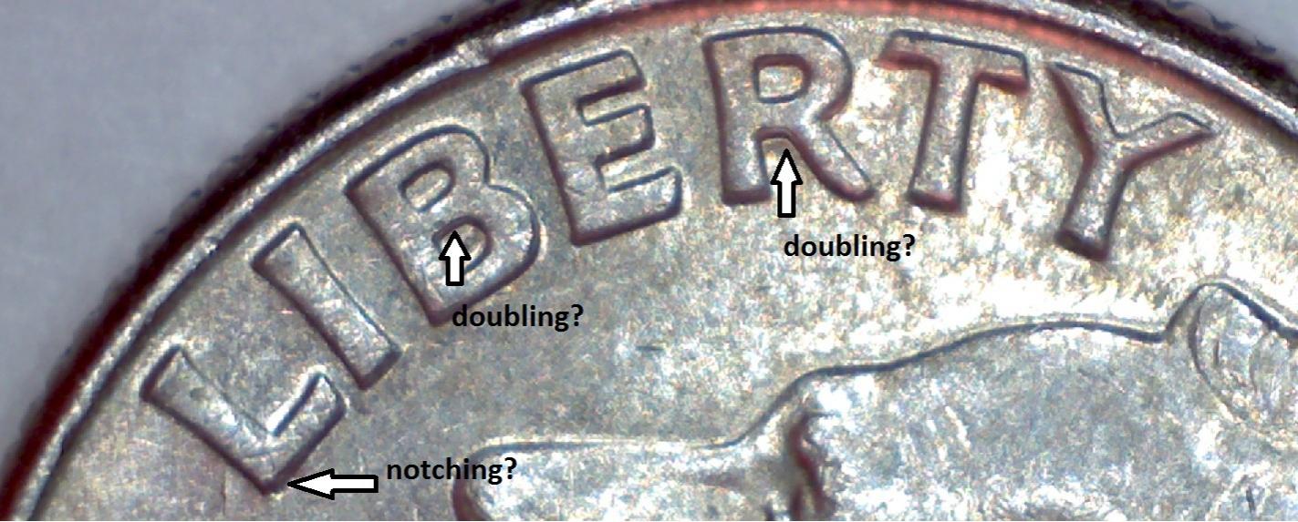 Can anyone tell me if I am right about the arrows in the picture? Pictures are from a 1999-D dime. Thanks!