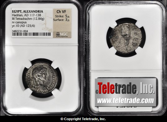 I saw this coin in a recent auction: What is the significance of Canopus? I found this information on wildwinds.com from a previous auction: On the reverse, does L DEKA signify the year 10? If so, what does the TOV mean? Or is it short for ETOVC (also meaning year)? Any thoughts? Other information or insights? Additional information about Canopus? guy