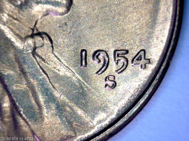 I'm not or ever have been a copper fan but still have some in my collection. I was searching through some of my MS pennies today and found this...1954 S that seens to had the 5 struck over something ...is there any known over dates in the 1954 Lincoln cents? I have searched my Cherry pickers and cannot find anything. Thanks Paddy