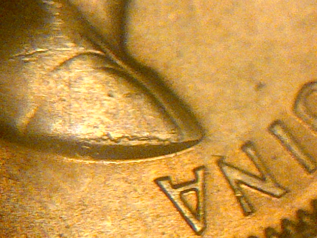 in this coin would this be consider a die chip,as you can see it almost has its own shape /symbol ,and if so can others be found with the same die chip various times over
