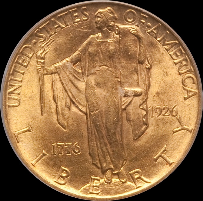 Please take a look at this coin and let me know your thoughts. Rare 1926 $2 1/2 Gold USA Sesquicentennial I think the coin is counterfeit. Note the mushy central details and the pockmarked surfaces. I suspect the buyer will be disappointed (if he knows how to spot a fake).