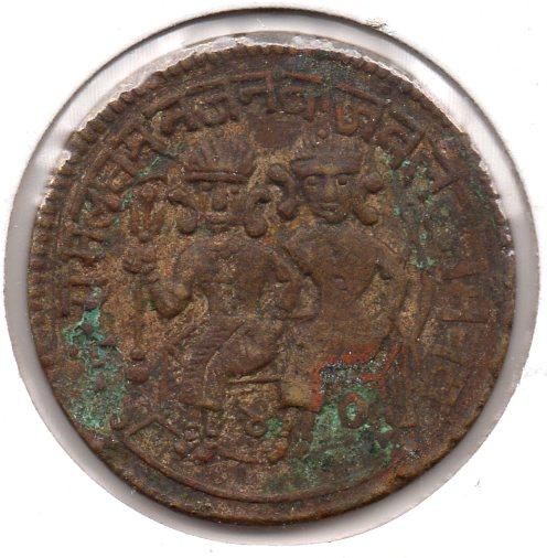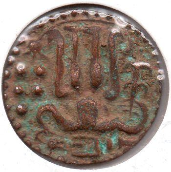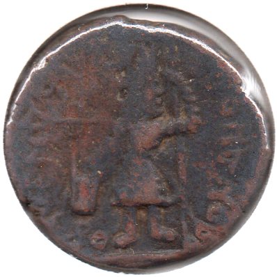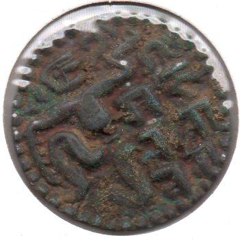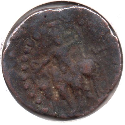 It is a Kushan coin with a depiction of the king in the obverse ( Vidma Kadphises or Kanishka ) and a deity on the reverse minted ca 150 - 250 AD