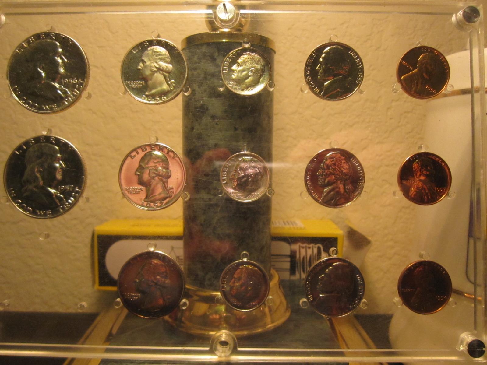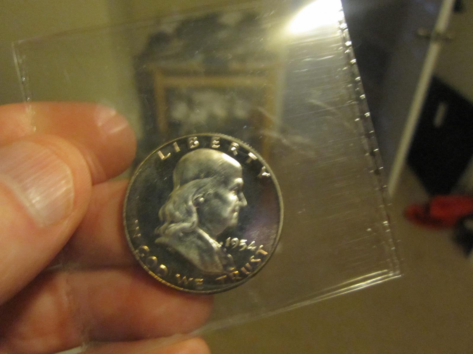 A little background. A few years ago I won a very poorly listed Ebay auction. Bad pictures and description didn't say anything about the coins being proof. I ended up winning for about 50 bucks total (silver was much lower then) a 1954, 1956, and 1957 proof set. Since I got this cheap and I think the 1954 Franklin might get a cameo designation I am thinking of sending it in for grading also. Questions on it. I can even tell the Obverse is cameo. Is there a way for myself to tell if it is cameo or deep cameo? It has toning on the rim at 6 o'clock near "In God We Trust". I believe that is probably from the wrap the way the stored them in the proof sets. Does that sound correct? Also the 1956 Quarter (top one) looks to be a nice cameo. All and all and nice pick up!