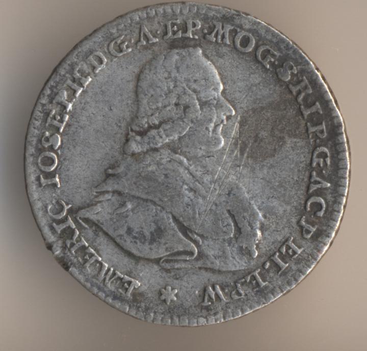 Looks like Mainz to me, because of the wheel in the CoA. The prince bishop at that time was this guy, and if you click on "Deutsch" in the sidebar, you will see a page that has his arms including the key and the dragon or basilisk ... Christian