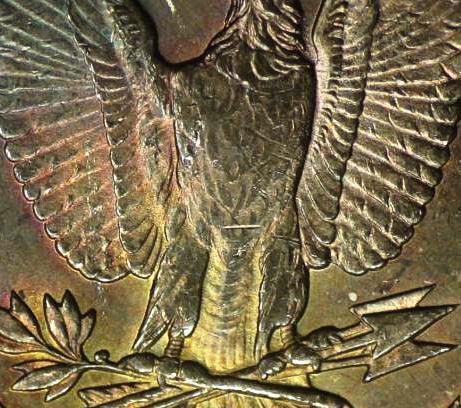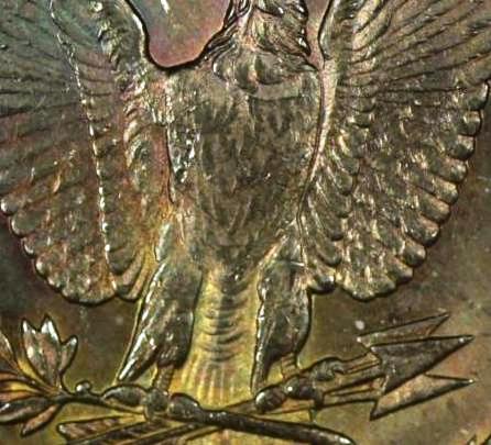 #2 is the most flattering to the coin, but #5 would be the one I would want to see if I were considering buying the coin as I think it probably shows the coin the way it would look in hand. If I saw #2 and based my purchase on that pic, and then when I got the coin in hand and saw all those contact marks on the eagle - I'd certainly not be happy ! And neither would the seller when I got finished. This thread is an excellent example of how different a coin can look in pictures just from ever so slighly changing the angle and the angle of the lighting. Everyone should remember this thread whenever they are making a purchase decision based on pictures. It doesn't even look like the same coin - but it is !