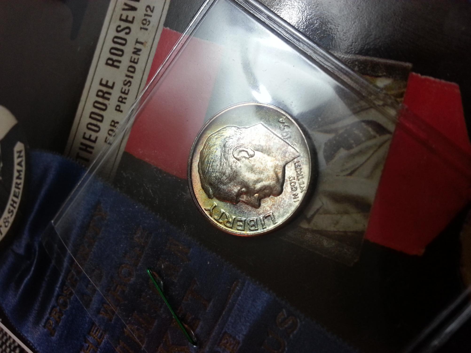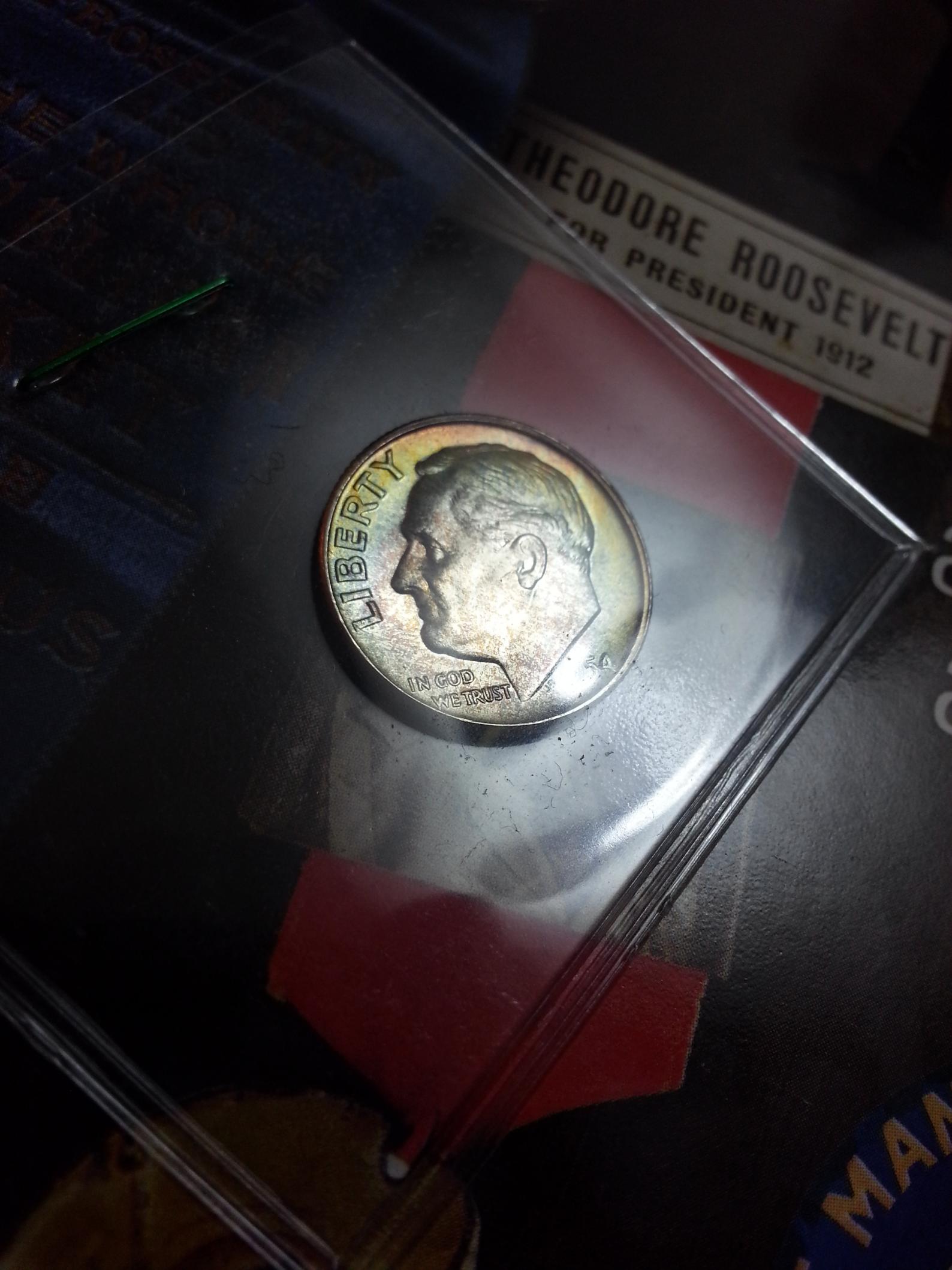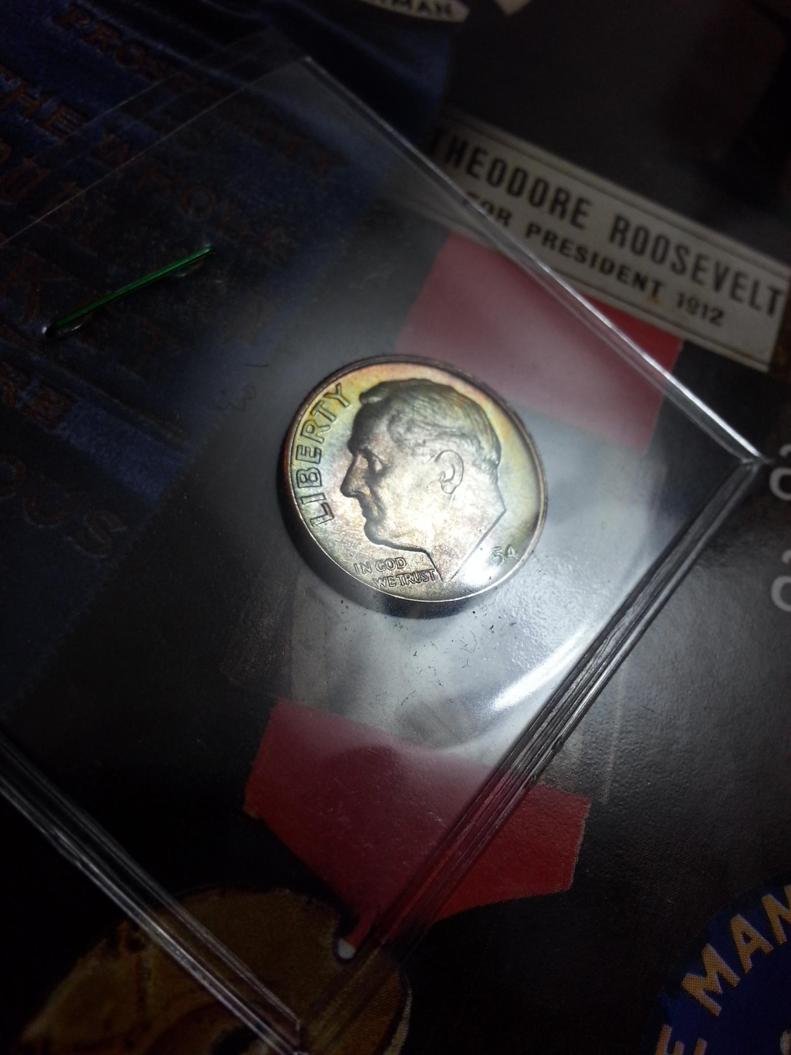 Hi guys. I bought this 54-D Dime the other day because I was really impressed with the nice color on the obverse as well as the over all quality. It is really a gem (excellent luster), and aside from a couple marks on the leaves (which cannot be seen unless under magnification) it is without View attachment 226446 View attachment 226447 View attachment 226448 View attachment 226449 View attachment 226450 blemish. While I am not terribly concerned with what it is worth I am curious to hear what anyone might have to say. More importantly I was wondering what you think this coin would grade out at, and is it worth the cost to have it slabbed? Much thanks everyone!