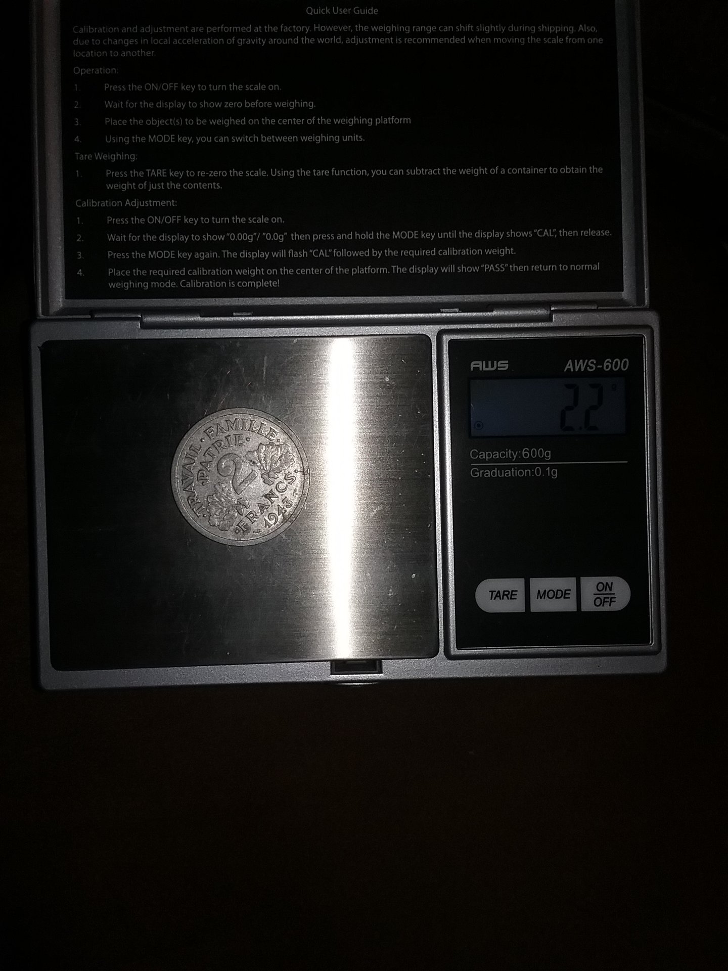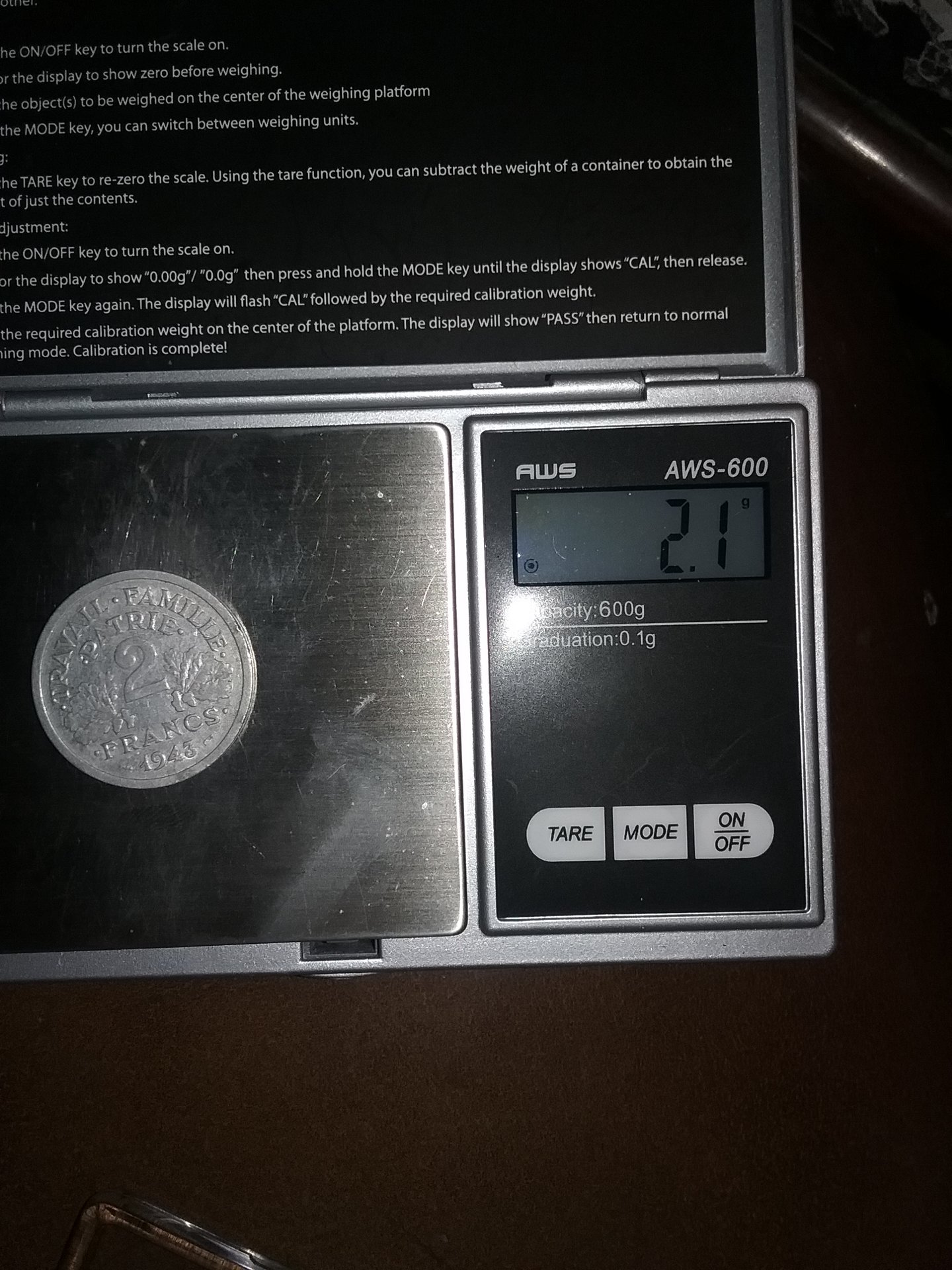 No. A 2 Franc is supposed to weigh 2.2g. Yours is fine. You should probably learn the difference between 2 and 1 since the "heavy" 1 franc with no mm is valuable. All of this was found with a less than 2 minute google search. I haven't posted in almost 2 weeks and said I was done for awhile specifically due to threads like yours. I've read so many of your posts in my ~2 week hiatus and they are frustrating. You clearly have not taken any time to learn or do proper research on your own. This will be the last thread of yours I reply to because I feel it is a lost cause trying to help. Good luck in the future. https://www.cointalk.com/threads/1943-2-francs.227673/ https://en.numista.com/catalogue/pieces299.html https://www.ngccoin.com/price-guide...-km-904.1-1943-1944-cuid-1128693-duid-1263929