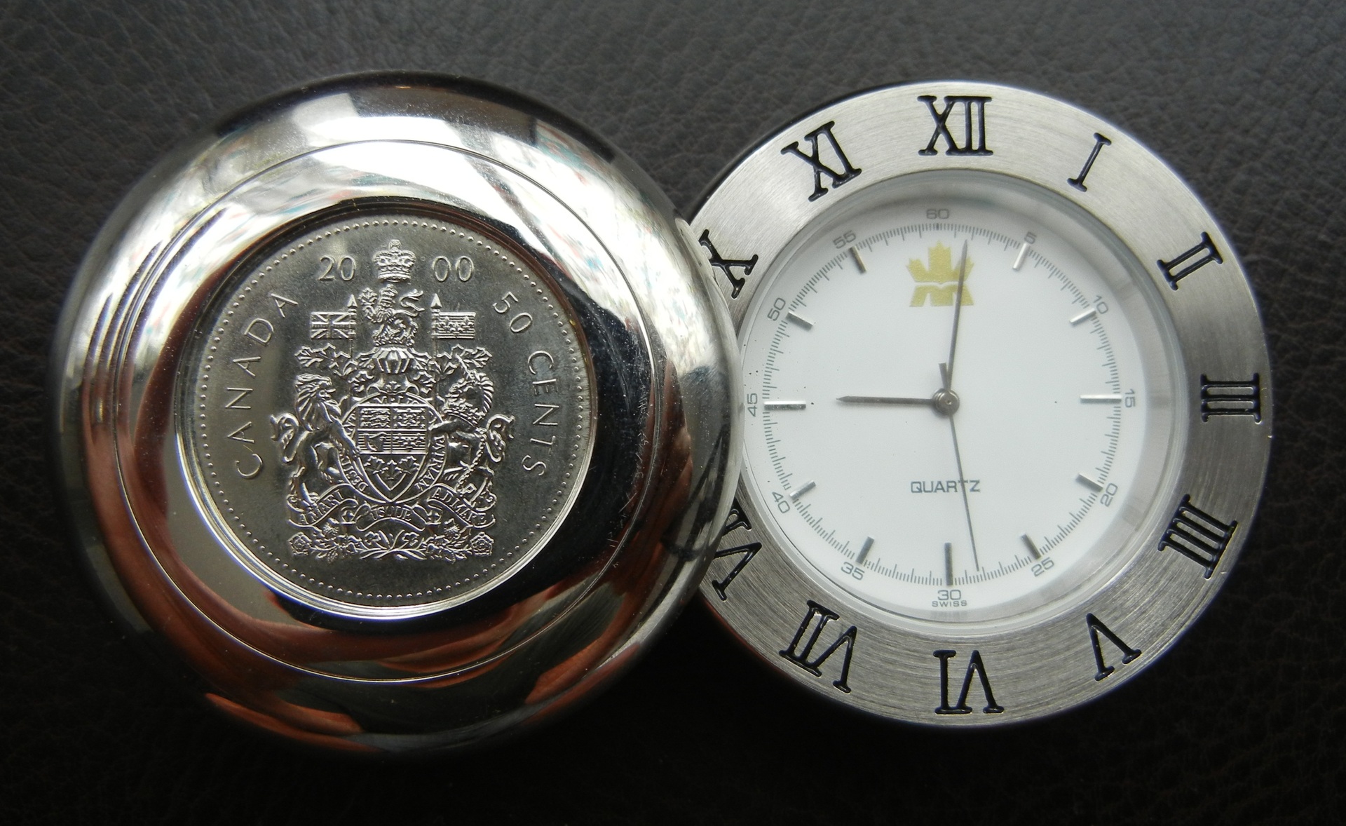 I recently acquired this extreme rarity in Canadian numismatics, and thought I'd share some pictures with my fellow coin addicts. I did some research on this clock/coin and it was given to approximately 200 mint employees in Winnepeg. I believe there were only 200 or so coins minted making it the rarest 50 Cent Canadian piece ever minted. I also believe only 25 or so of these coins were distributed actually inside the souvenir clocks. As far as I can tell, these are the only pictures posted online. Enjoy.