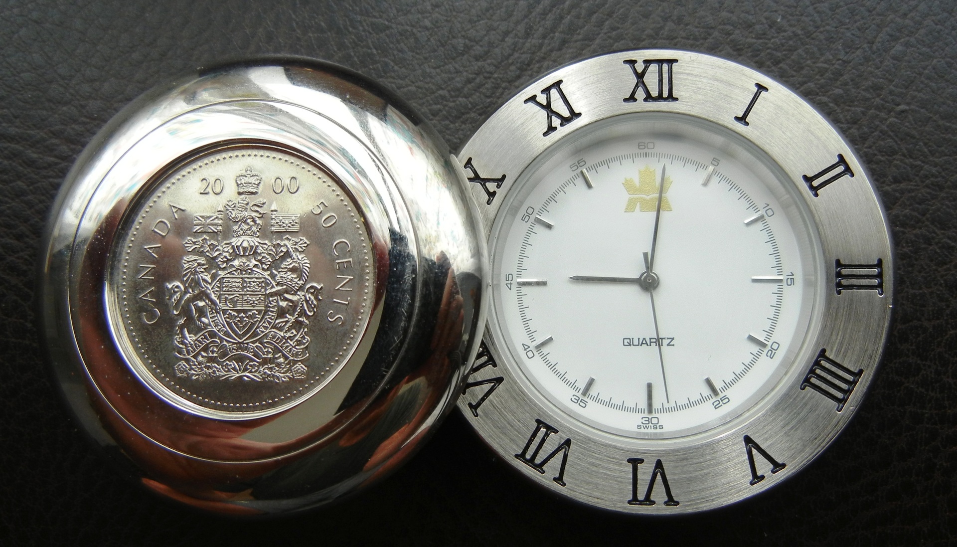 I have one of these clocks, with the 2000p 50cent... I was on the project that oversaw the plating facility construction. Any idea what this is worth by chance???