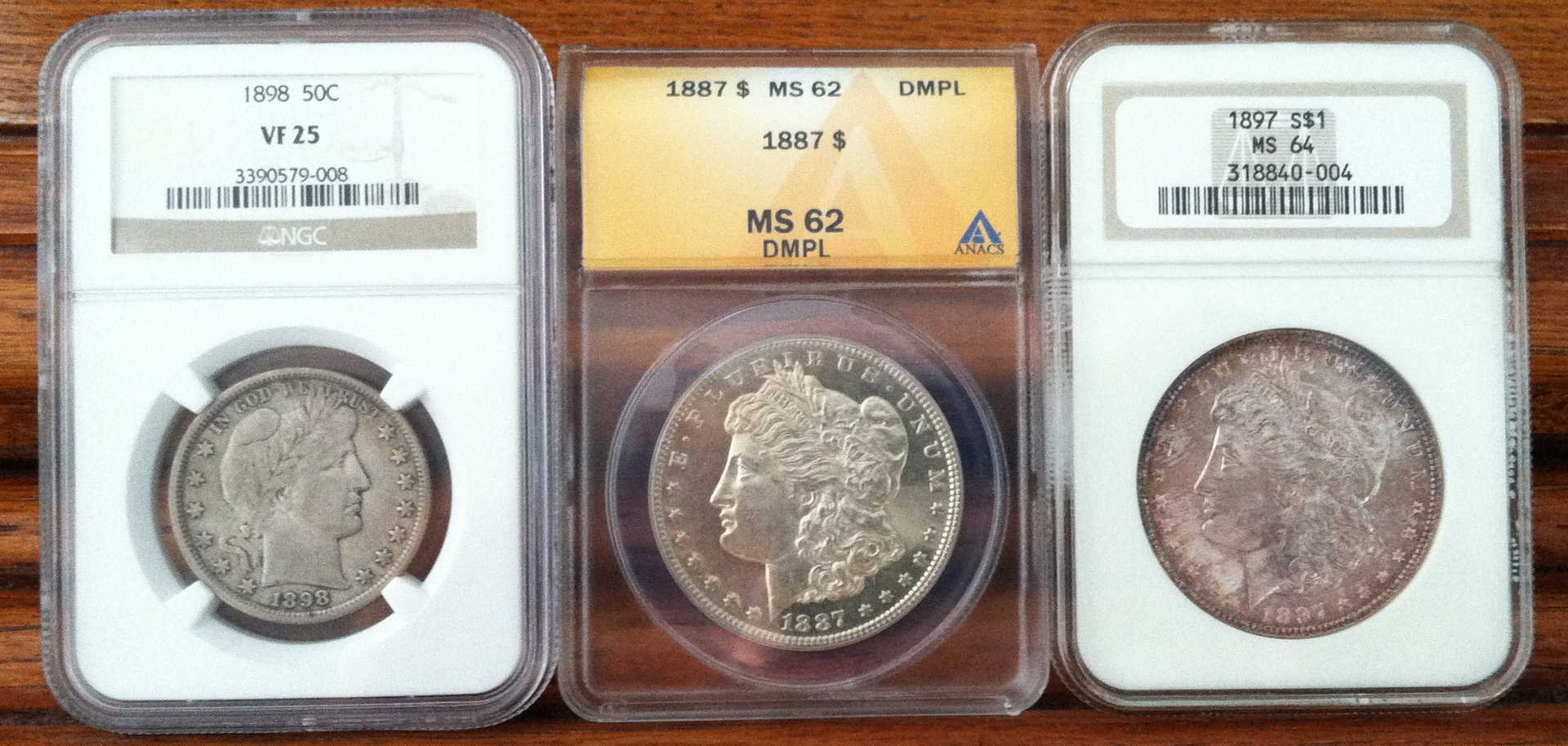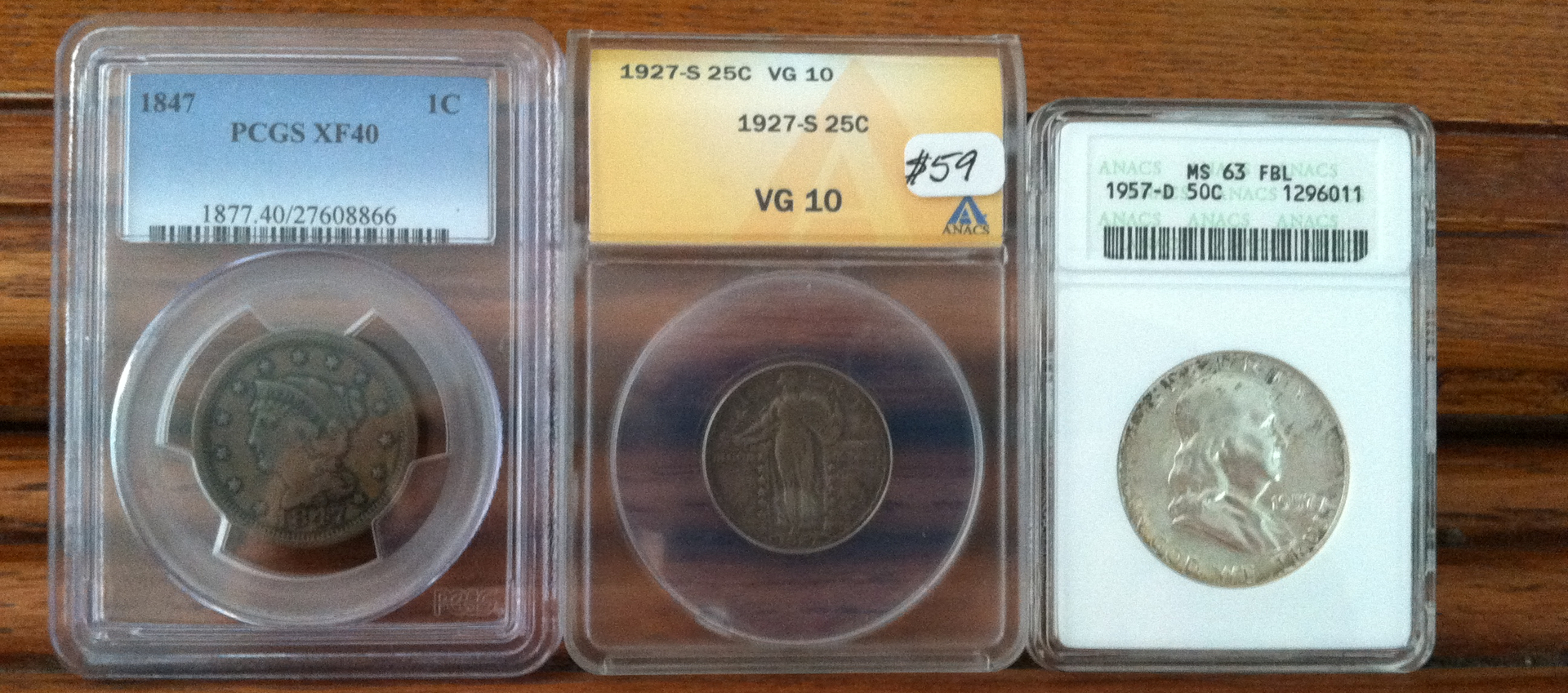 People I've Sold Coins: Moto450 + CoinsExplorer + akajcw95 Payment/Shipping: -PayPal Gift or USPS Postal Money Order-Shipping = $2.80 including tracking # Graded Coins: 1c 1847 Large Cent PCGS XF 40: $9025c 1927-S Standing Liberty Quarter ANACS VG 10: $5550c 1898-P Barber Half Dollar NGC VF 25: $12050c 1957-D Franklin Half Dollar ANACS MS 63 FBL: $26$1 1887-P Morgan Dollar ANACS MS 62 DMPL: $175$1 1897-P Morgan Dollar NGC MS 64: $95 Barber Halves: 1897-P: $161900-P: Sold1901-P: Sold1901-S: Sold1905-S: $141906-S: $141906-O: Sold1908-O: $141909-S: $141909-O: Sold1914-S: Sold1915-D: $14 First Come First Serve, PM If You're Interested I'm mainly trying to sell off the extra barbers I have to help fund the ones I need.