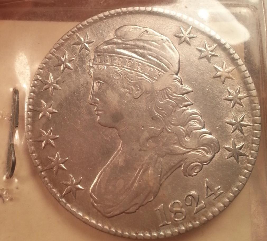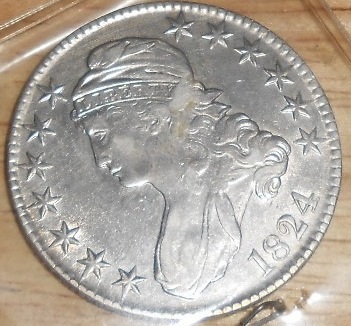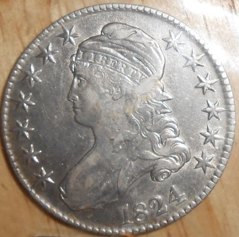 Well, here's one the 'bay for siddy (I know, it's a BIN and probably won't sell for that price)... and it looks a LOT worse than the coin above... I'm thinking closer to a hundred for the OP's coin. :smile http://www.ebay.com/itm/1824-Capped-Bust-Silver-Half-Dollar-Rare-Date-Genuine-US-Mint-Coin-/171005180279?pt=Coins_US_Individual&hash=item27d0b3f977