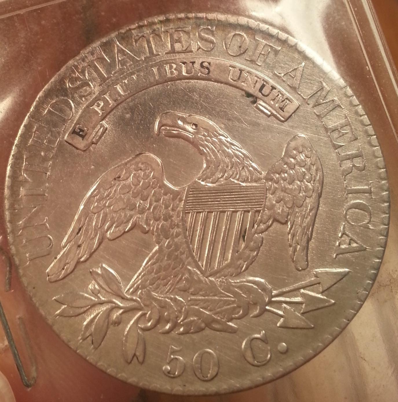 Just got this, wanted some opinions on these. The last 2 Bust halfs I bought in a package deal on eBay, MIA, 11 days. Is it real, weak strike on the reverse it appears like an AU coin. I'm also going to post my first Flying Eagle, 1858 that appears to be EF.