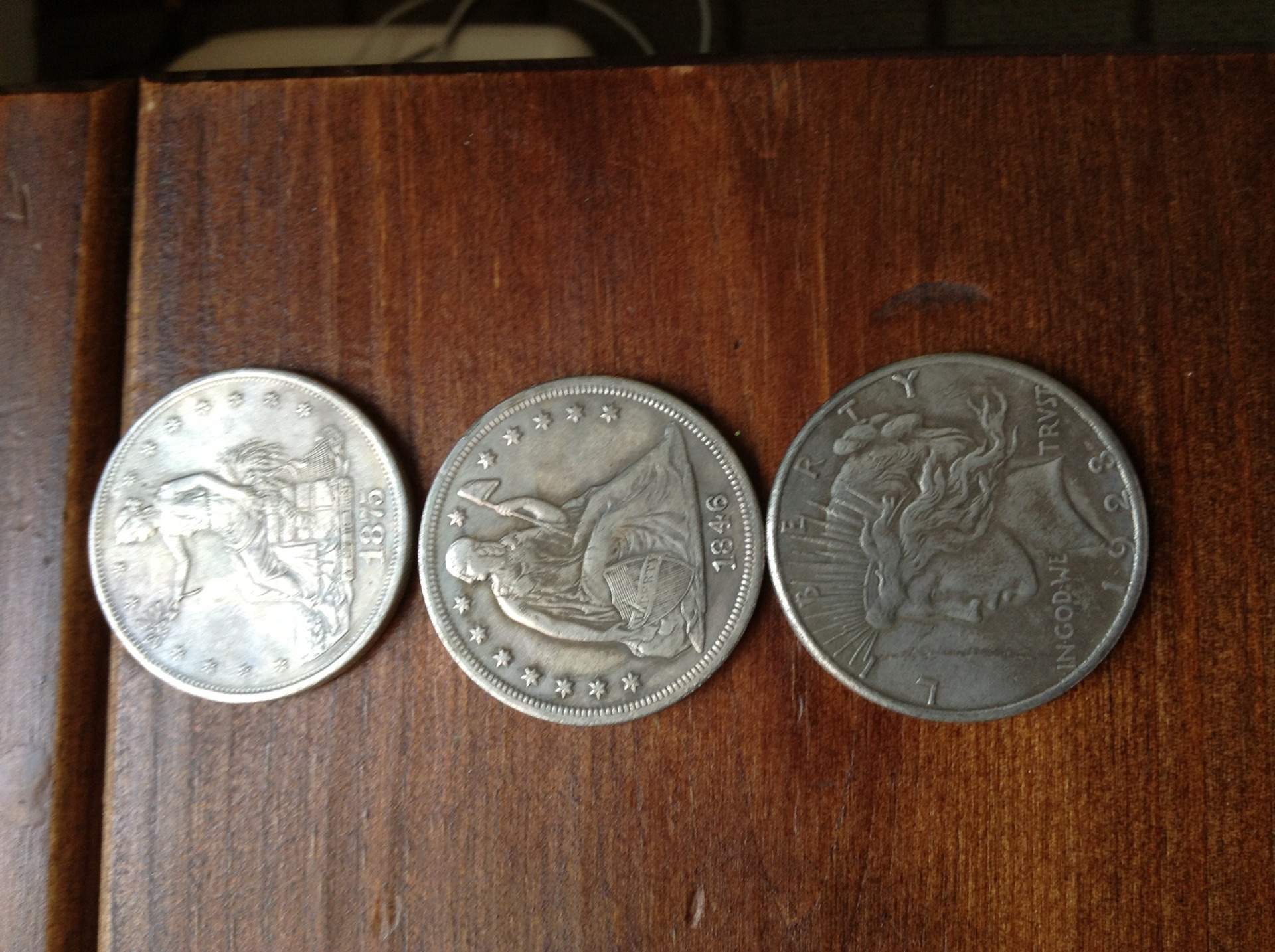 You've got sharper eyes than mine. I'm wondering whether that "Peace dollar" is really larger in diameter than the "Trade dollar" or the "Seated Liberty dollar"...
