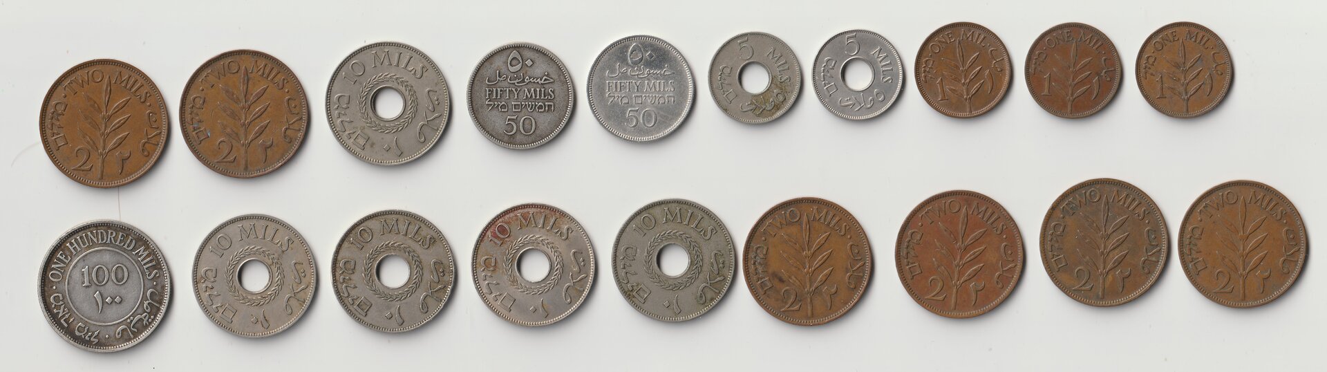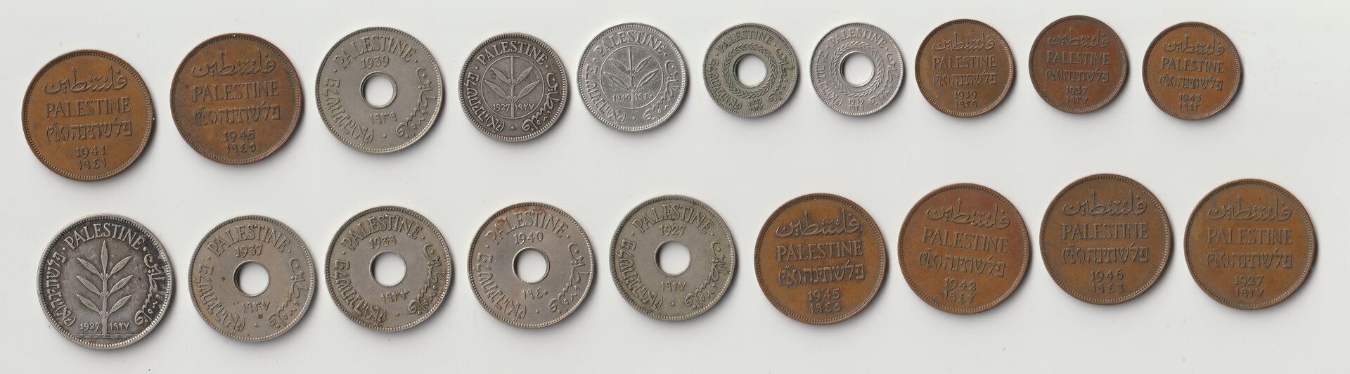 First a little backstory. I've been going to the same coin shop for years and I always dig through their 25 cent world coins bins. Usually they've had huge quantities and I'd spend a few hours going through everything. But in the last year or so it seems every time I go they tell me they don't have much in that bin because people keep coming in and buying it. But what they've been doing instead is letting me look through the unsorted bins of foreign coins they bought but haven't had a chance to go through yet. This has turned out to actually be a lot better as I'm the first person getting a crack at any of this. I've had a lot better buys from this than I ever did from the 25 cent bins. So today the usual happened and they had a lot of unsorted coins to go through. Apparently they had been buying someone's whole collection that he's been selling a little at a time. This meant that they only had certain countries, but what they did have, they had a lot of, and fortunately some of those countries were areas of interest of mine. So long story short, I wanted to show the Palestine coins I bought. These are just the different dates. I also have several doubles that are not pictured here. Palestine is a hard place to find coins from and I can go years without seeing any. Strangely I think I've found some the last three times I've gone coin shopping.
