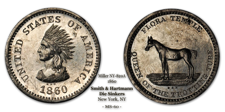 Very nice Cheetah. The NY- 820 A is beautiful. Wood's Minstrels also issued counterstamped coins as well as the tokens, so it would be nice to have one as a companion piece. I try to do that with my counterstamps. If the issuer also has a token I keep an eye out for one. Great pickups! Bruce