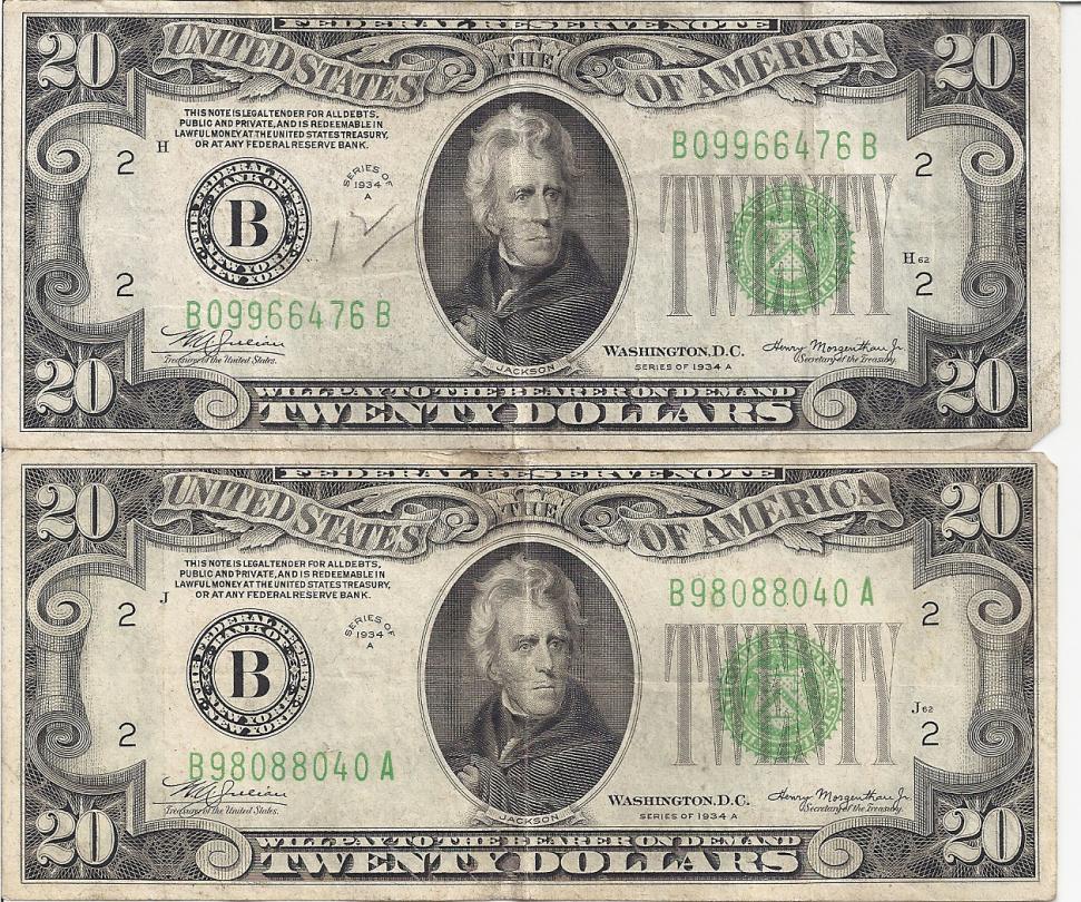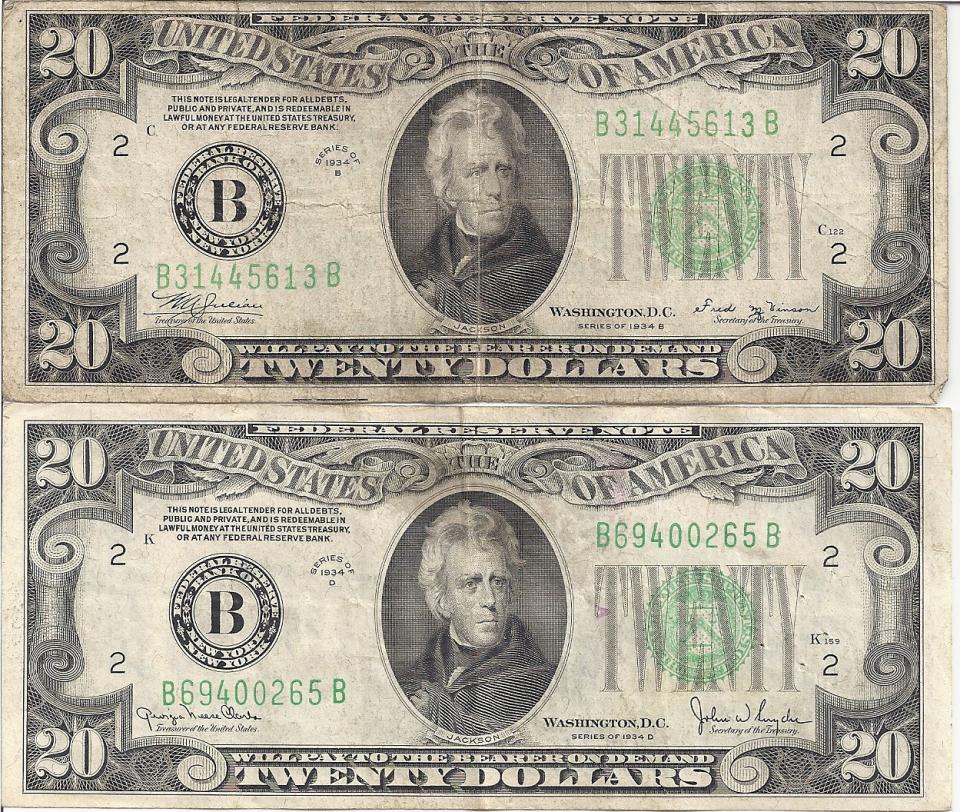 I wonder if these came from a collection. You have series 1934 A, 1934 B and 1934 D there. Note how "The Federal Reserve Bank of New York New York" became "Federal Reserve Bank of New York New York" in going from 1934 A to 1934 B.