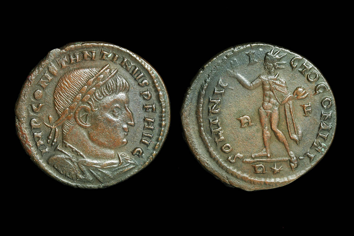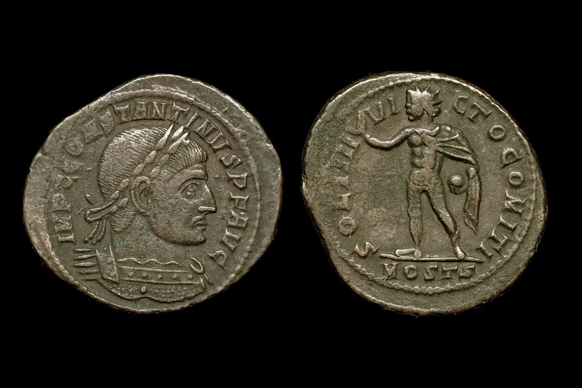 I think even the idea of conversion isn't really appropriate to the 4thC. The whole idea of believing exclusively in one god was something new - the romans had previously been much more inclusive, happily adopting foreign gods alongside their own. Even 100+ years after Constantine we have Pope Leo I complaining about his congregation turning east on the steps of St Peters to bow to the rising sun. While Constantine appears to have started to adopt Christian beliefs around the time of his Italian victory, you won't find any such references on his arch commemorating the event, and even when founding Constantinople a decade later he chose to erect a massive column topped with a statue of Sol (or perhaps himself in guise of Sol, with a radiate crown), which only later evolved to become considered as a Christian monument. It's hard to guess how he was internalizing his simultaneous embrace of Christianity with his waning solar monotheism, but certainly the idea of a "conversion" does not seem appropriate. It's interesting to note that after taking control of Rome in 313AD, not only do we see Constantine doubling down on his already established Sol coinage, but then also going out of his way to issue coins celebrating the festival of Isis, which Maxentius had not done! On Constantine's coinage we see explicitly pagan themes disappear, or become much toned down, but never really replaced with Christian ones. There's a period around 318-320AD where it seems he is going to, but then he instead chooses just to switch to generic themes of security (campgates) and army (gloria exercitus) and roma/constantinopolis. We see Christian symbols used as issue marks appearing from a few mints (seems more like a choice of the mint), but very few coins where Christian symbols were used as part of the actual design, which is why his very brief "SPES PVBLIC" type with labarum piercing a snake is so famous.