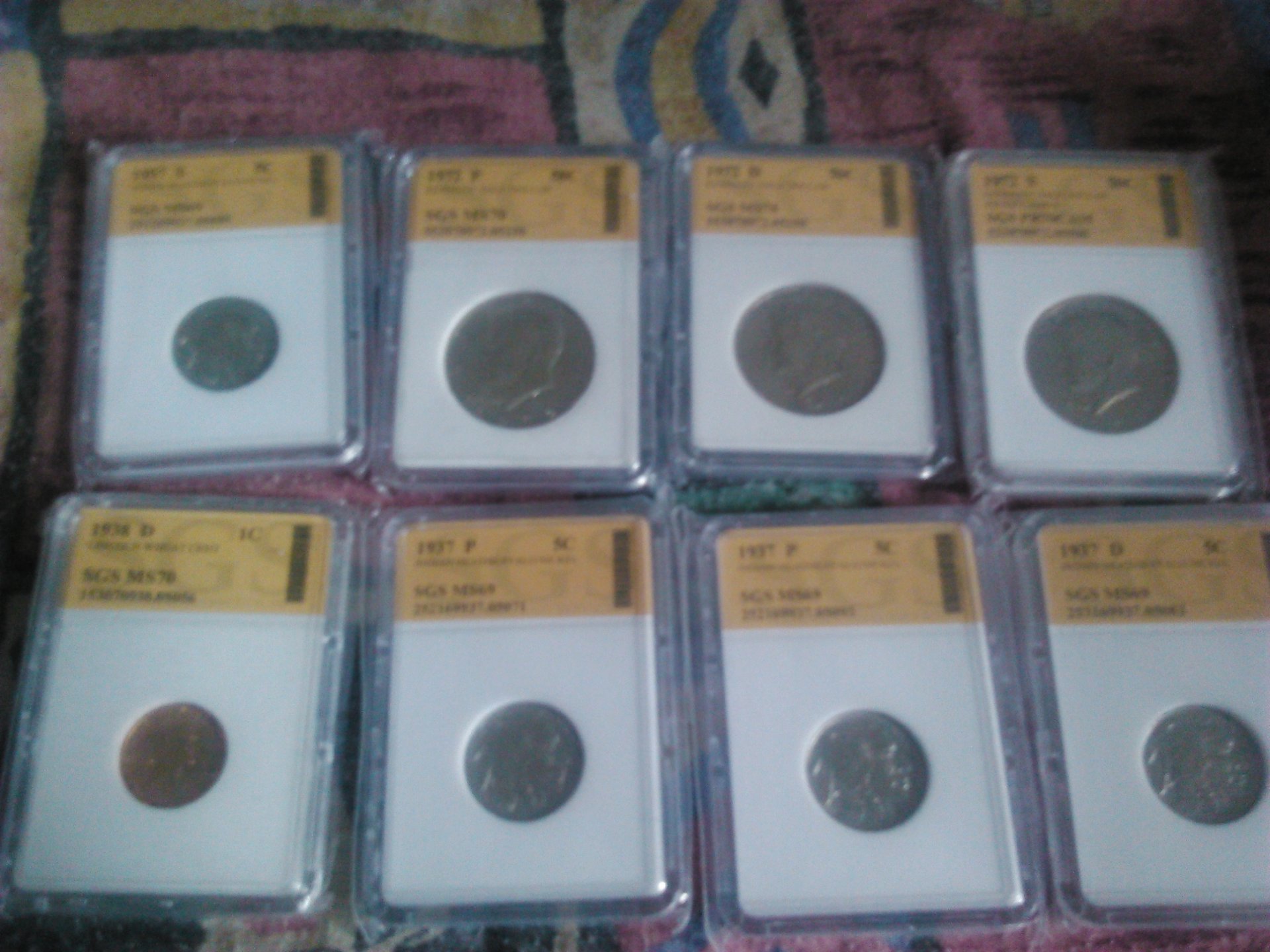 bottom line is the slab in question is seen as less then a raw coin in the market place as they often put in problem / processed coins with a fantasy MS number. I would suggest not slabbing these coins with a top tier firm. If the coins are stable and you like them that's what counts.