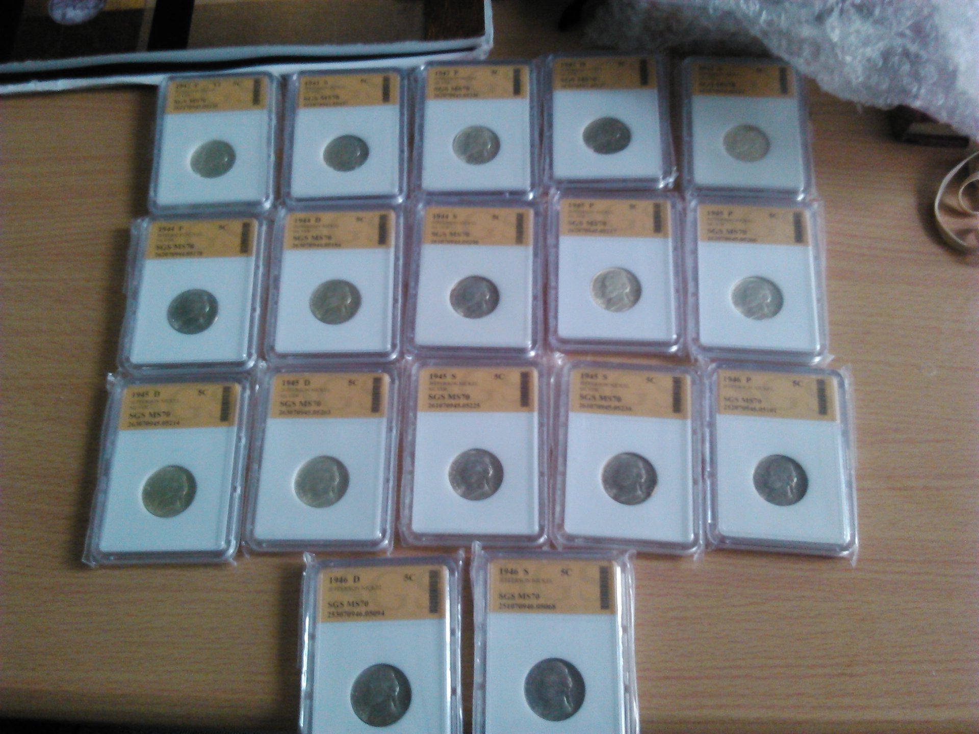 when I first started collecting again back in 2000 ,I ran into abon sgsgrading services ,coins and purchased this war Nickel set pretty decent to me from the way it was kept I wanted to purchase the coins not the holder, I tried to get the stuff now I want to get it recertified... sure just bring it out the slides or leave it as it is just keep the set in the little /