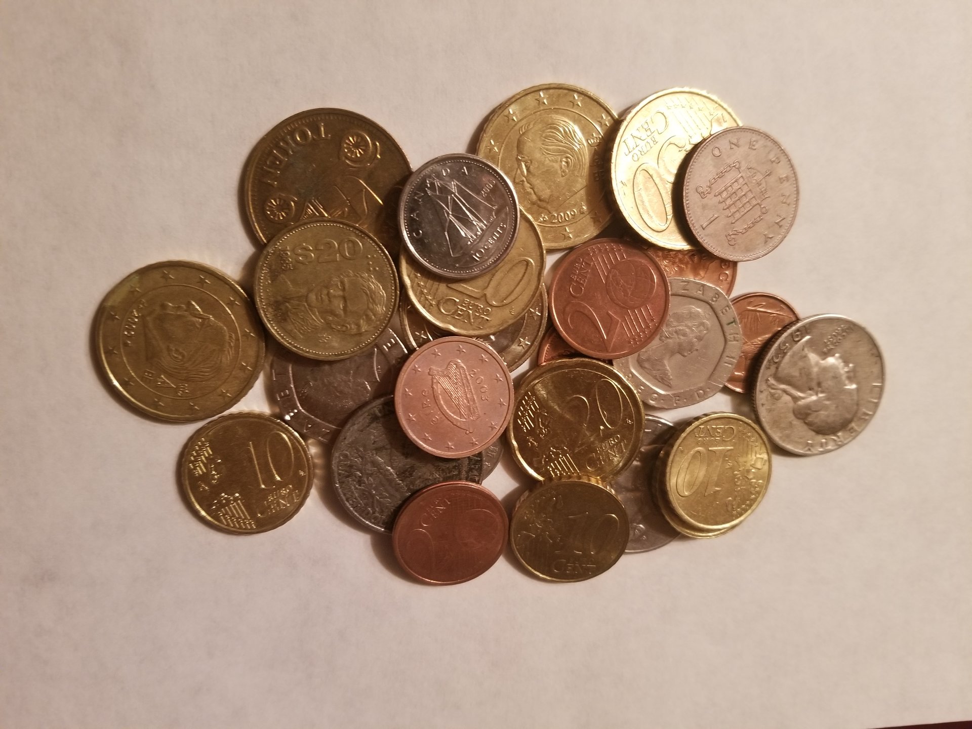 The wife got the coinstar before I did... 3 quarters 2 cdn nickles 3 cdn dimes 3 1 eurocent 2 2 eurocent 2 5 eurocent 2 20 eurocent