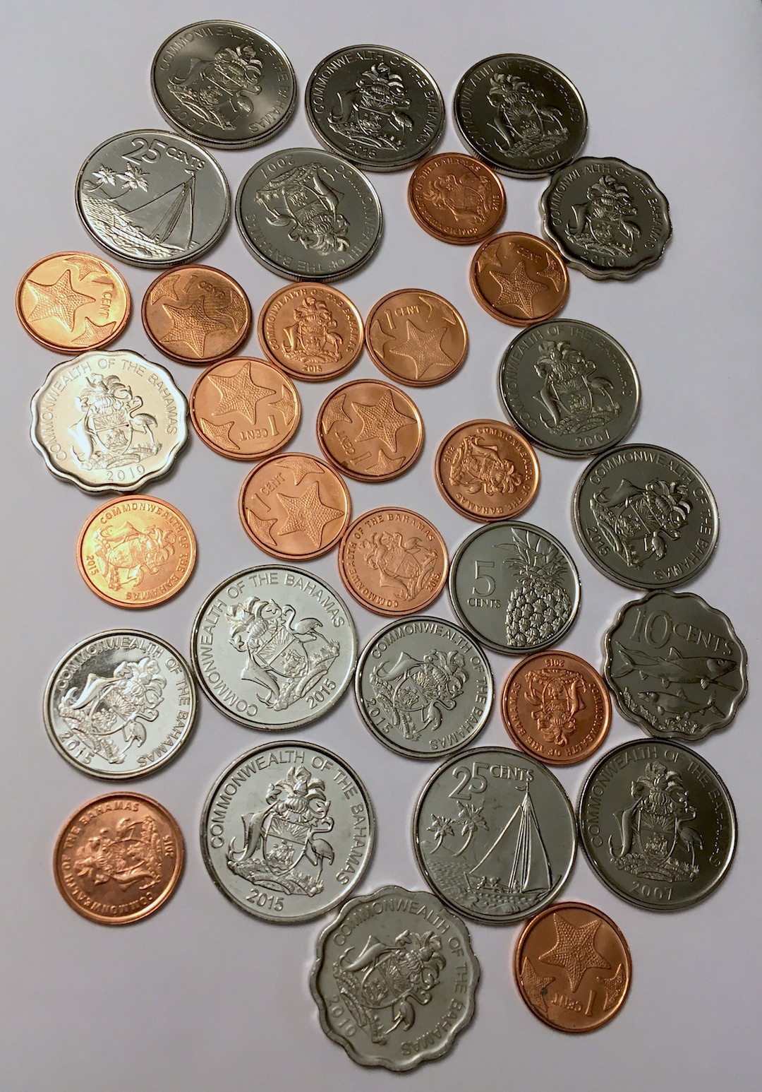 Out of curiosity, are all those Bahamian one-cent coins dated 2015? I had a Coinstar find similar to yours a few years ago myself, albeit significantly smaller.
