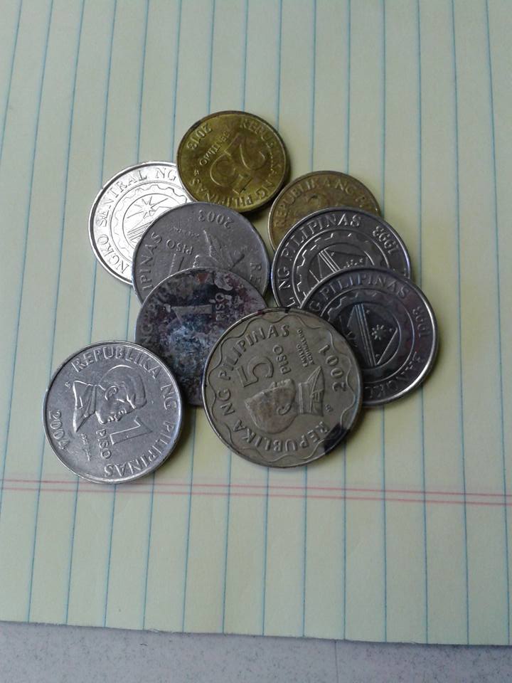 US: 7 quarters 1 nickel 7 cents 14 dimes Canada: 3 cents 1 dime 3 nickels 4 quarters Other: Mexico peso 2 euro cent battery All in a coinstar.