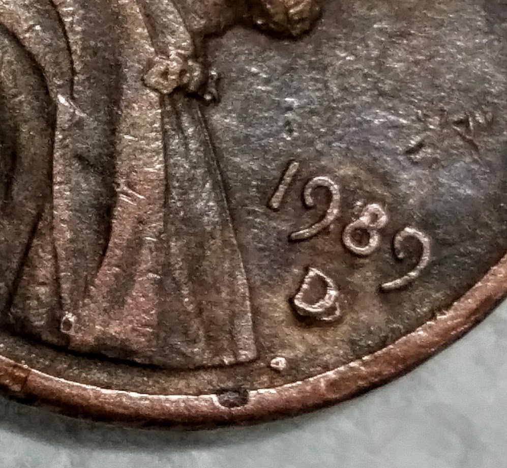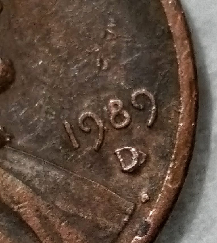 See all the other 'hits' above the date, on the rim, etc? And, the flattened right side of the D mintmark ? Same - contract or hit marks from circulation