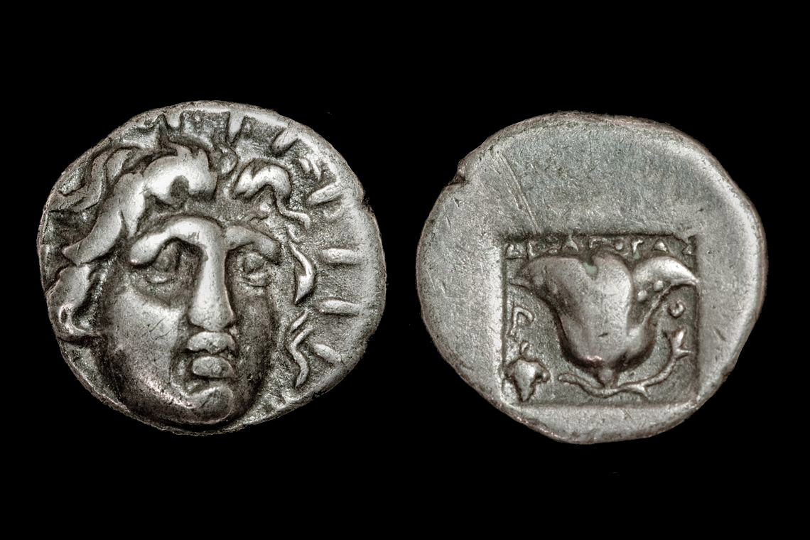 I see no reason to doubt your coin. I consider VF about right since the nose is not flat and there is some detail left in the flower. I suppose I could be hardline and suggest aVF but can live with VF as well. My coin is of a different magistrate and has more wear so I call it Fine. I consider them of very similar style. I suspect someone has listed the magistrates but that does not mean that we have a correct order or dates assigned. I do not own the reference that does. http://www.acsearch.info/record.html?id=278270 CNG sold the one above (a bit less worn) as VF and described it: ISLANDS off CARIA, Rhodos. Rhodes. Circa 170-150 BC. AR Hemidrachm (12mm, 1.38 g). Artemon, magistrate. Radiate head of Helios facing slightly right / Rose with bud to right; club to left;AΡTEMΩN above; all within incuse square. Jenkins, Rhodian, Group B, 44; SNG Keckman 653; SNG Copenhagen 842. VF.