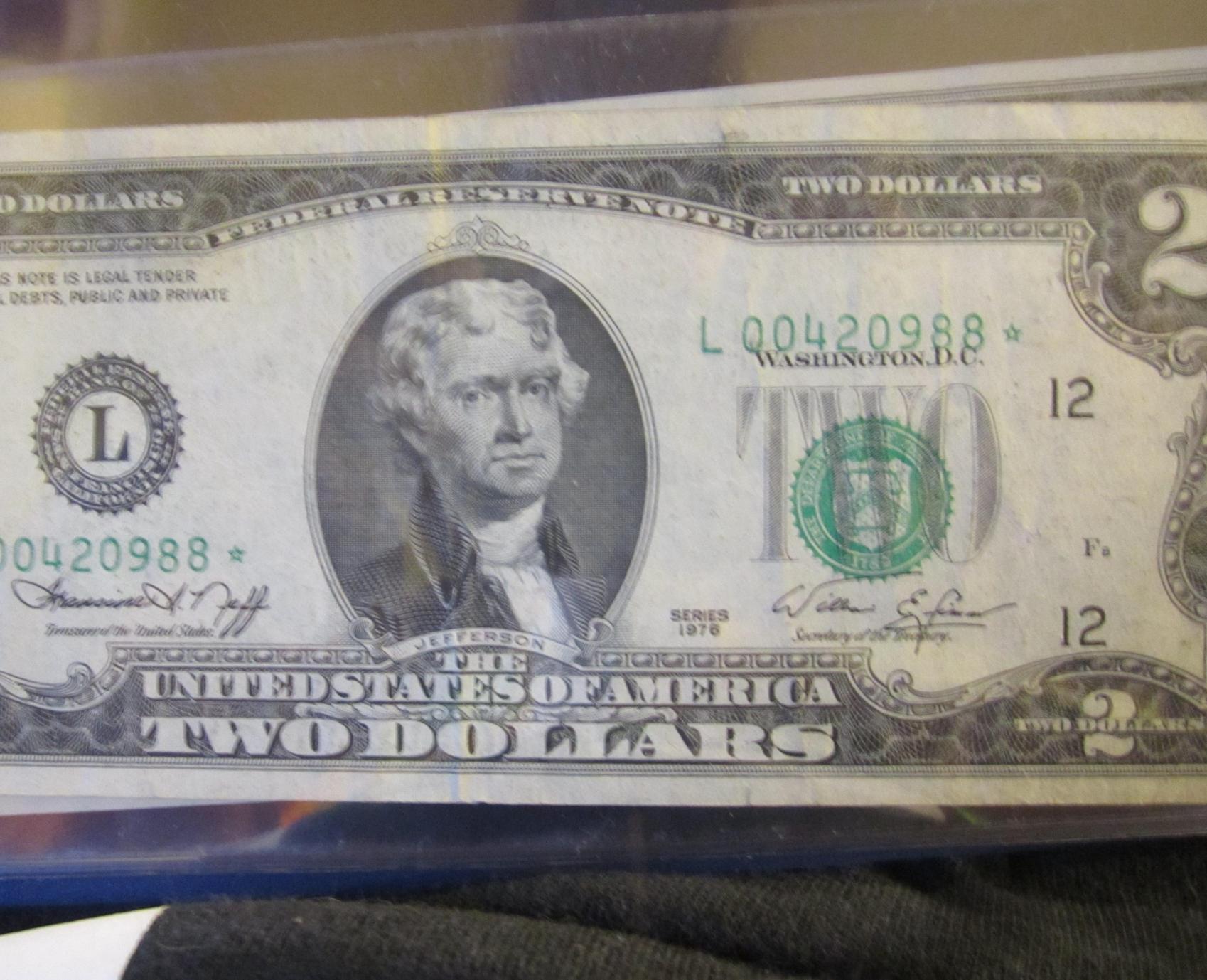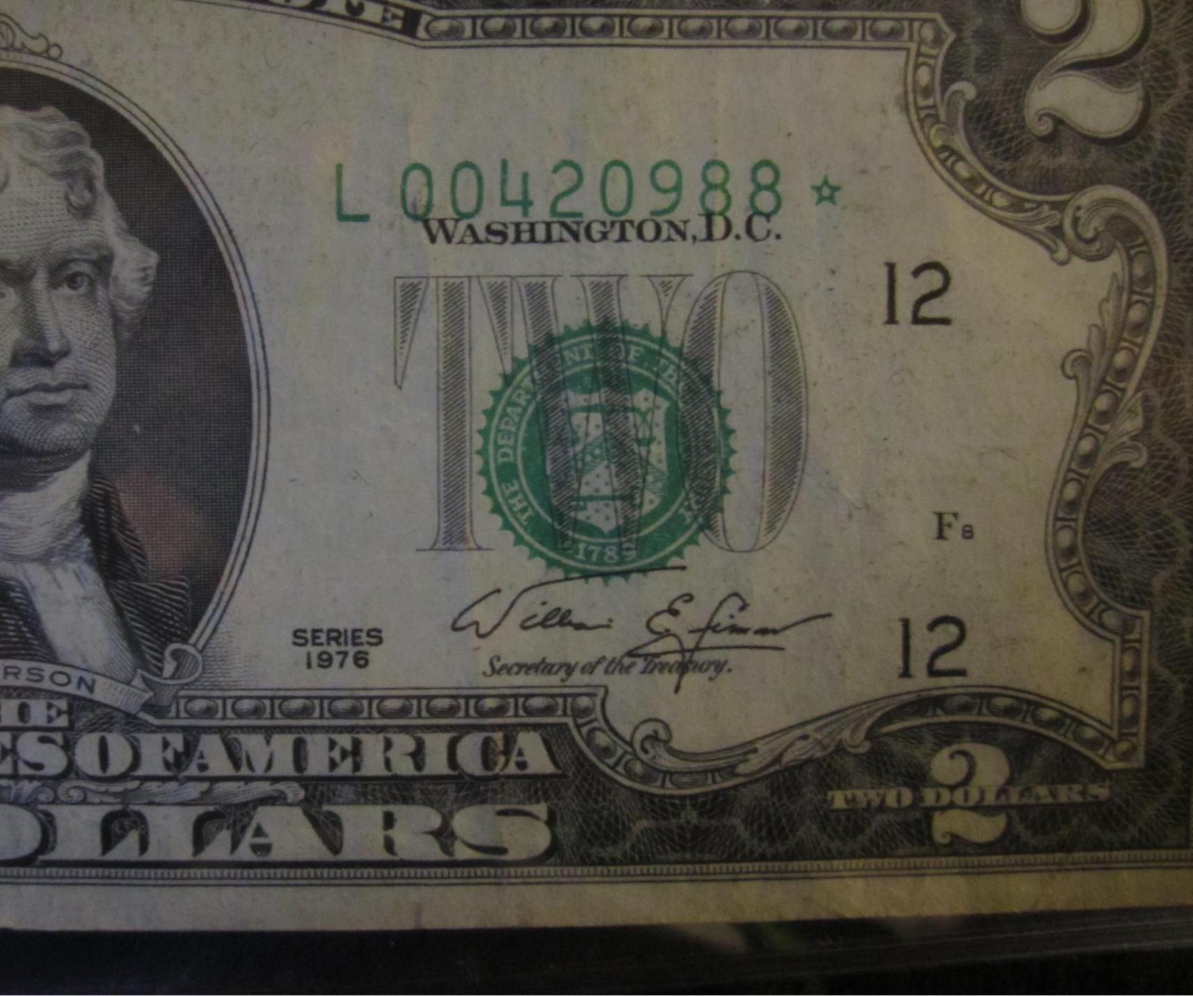 I'm not too interested in it's value, it will be mine forever ^^ But the neat misalignment/error is why I bought the notes that I did. I bought this one just thinking it was a star...then noticed the green stamp over the word TWO was lower than the rest and so on and so forth. Thx for the responses:yes: