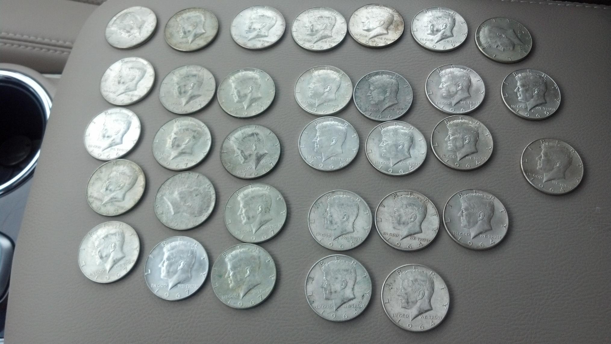My best and largest find to date!! Stopped by an Amegy Bank today asking for halves and they handed me an envelope with $19 in it. As they are counting it in front of me all I see is the beautiful color of silver...32 total!!!