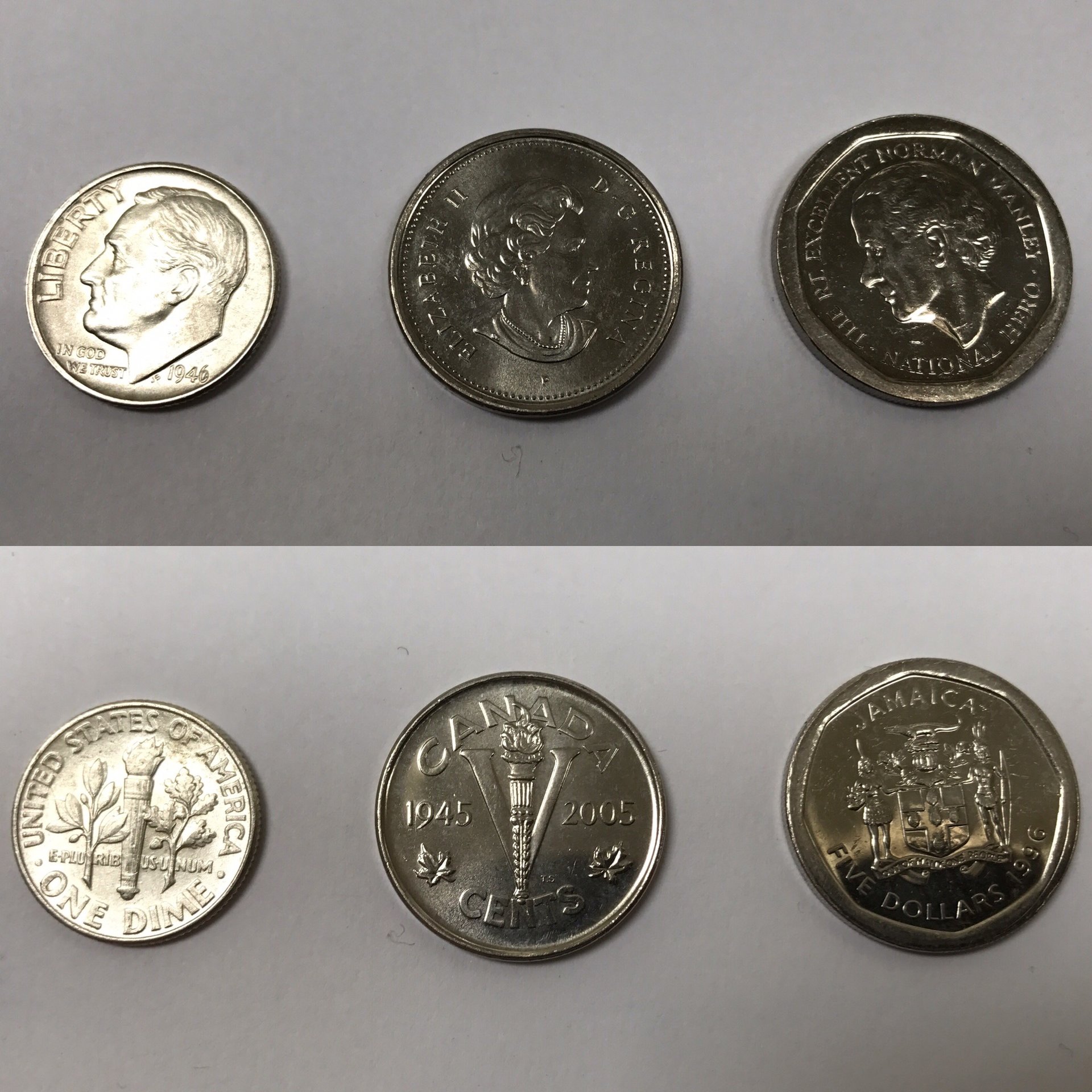 $100 CWR Nickels: 39, 40, 40-D, 41-D, 46 (x2), 47, 48, 49, 52, 53 (x3), 54-S, 57-D, 58-D, 59-D (x2), $5 Jamaican, and a 2005 Canadian "V" nickel. Definitely not the kind of V I was hoping for, but I did do a double take.