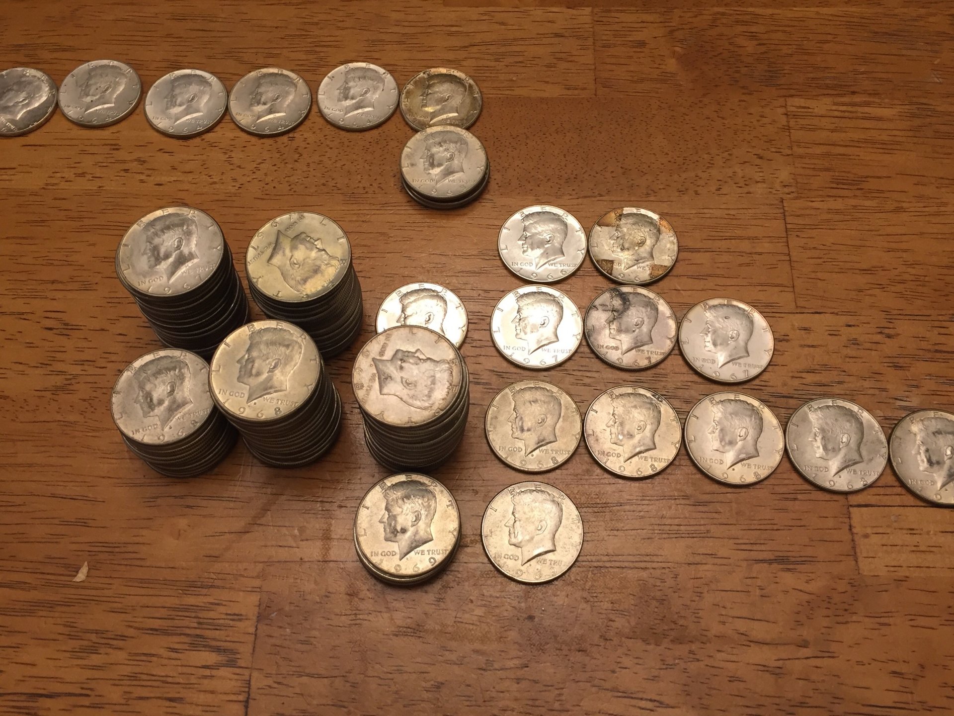 The coins on the right side of the stacks were sprinkled throughout the cwrs that weren’t labeled “silver”.
