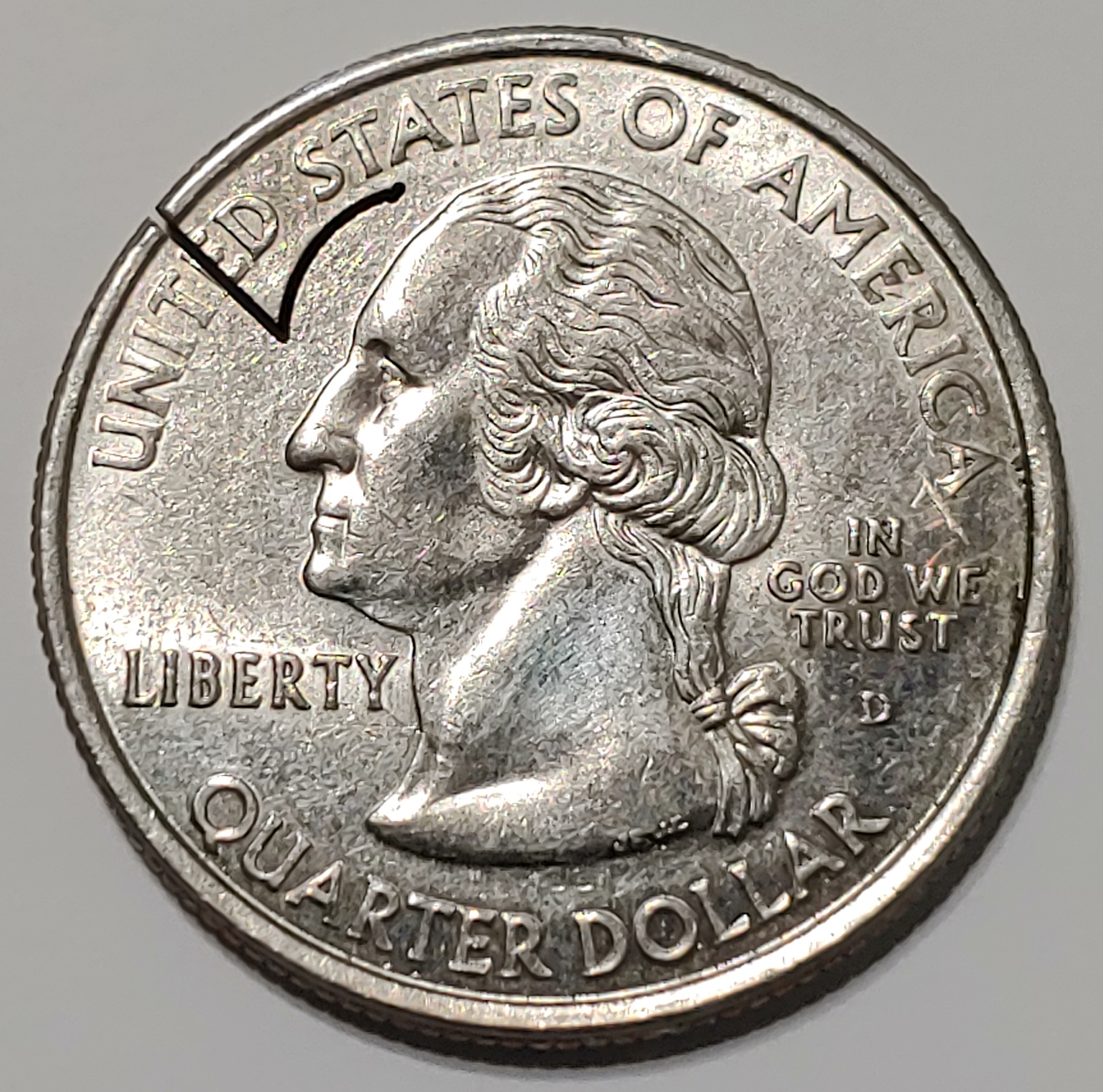 Found this today and it's a first for me. It's like there's a very clean cut that goes all the way through. Could it be a possible mint error?