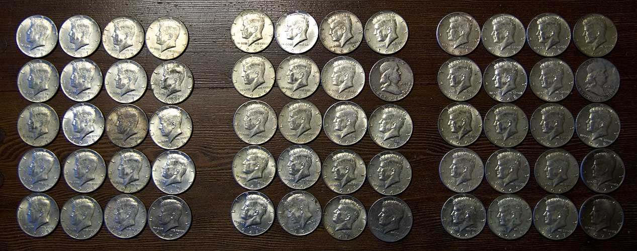 I got lucky. I just acquired $1500 in halves and $1000 in dollars from a relative who runs a restaurant. He has been separating coin dollars and halves from his receipts for 10 years so as not to confuse his customers when he gives out change. I got 11x64 Kennedy halves but only 1 Peace. Still have a couple hundred SBA and Sacs that I don't know what to do but as these are not silver they are not relevant to this thread