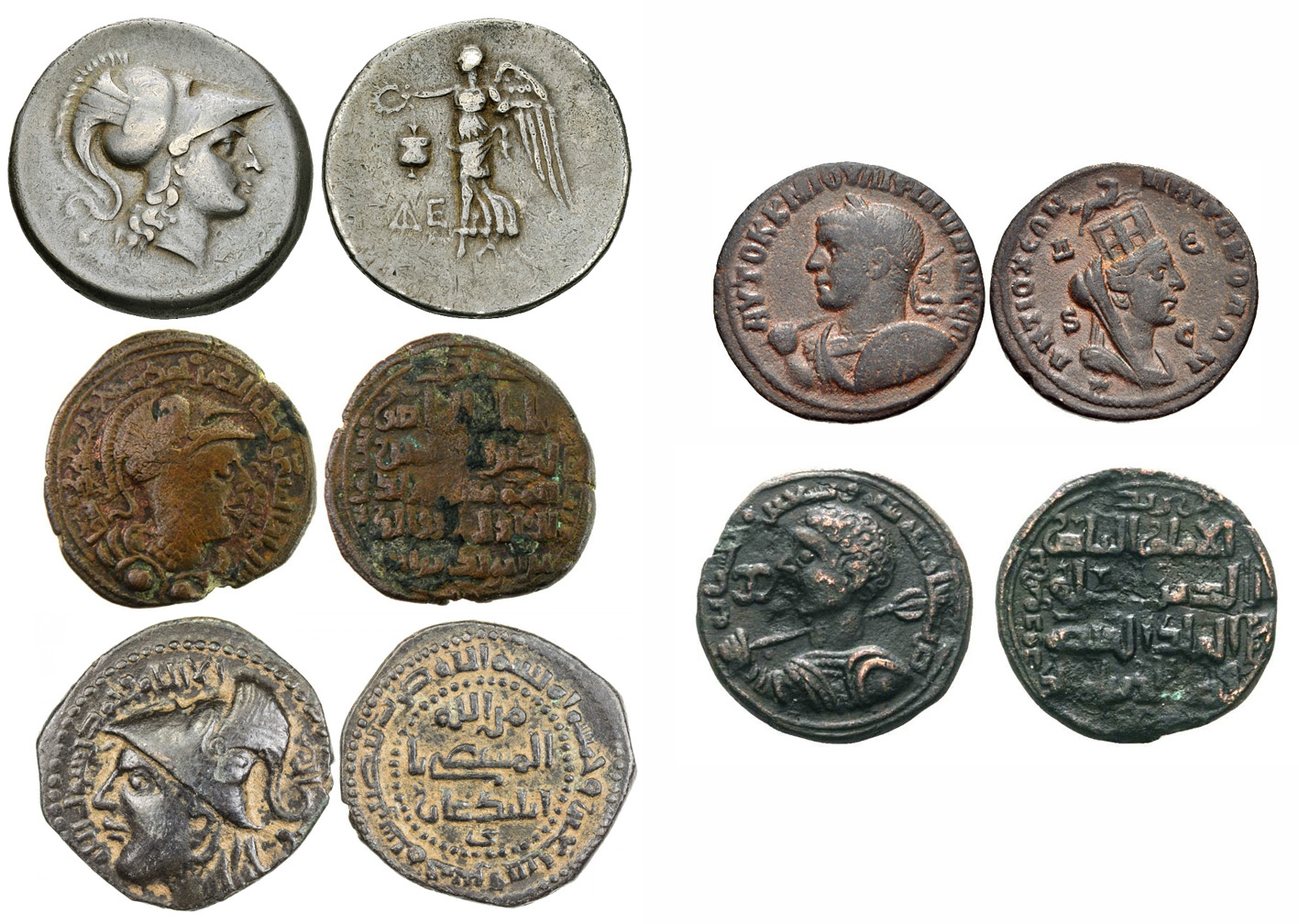 Maybe the Zanjid atabegs of Mosul or Sinjar did even better. In the 12th and 13th c. AD they minted bronze dirhams with obverse types copied from 1400 years old tetradrachms of Side or 950 years old octassaria of Antioch... (Not my coins...)