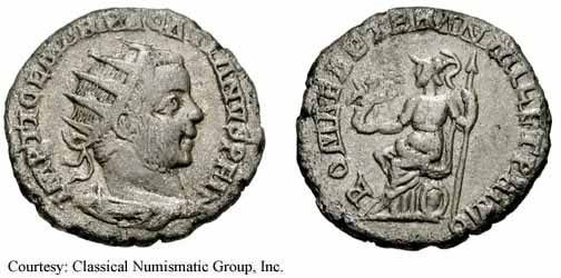 While recently reading an old Chelator magazine (April/May 1987), I was reminded of a previous post where I asked about Romano-Egyptian coins that showed the regnal year. Others also noted that Parthian and Seleukid coins were also dated. Here are two additional Roman coins with dates. (The magazine briefly mentioned the first coin): http://www.acsearch.info/record.html?id=1032 -. Aureus (Gold, 7.33 g 6), Rome, April, 121. IMP CAES HADRIANVS AVG COS III Laureate, draped and cuirassed bust of Hadrian to right. Rev. ANN.DCCC.LXXIIII NAT VRB.P.CIR CON. The Genius of the Circus reclining left, nude to the waist and with his head turned back to right, holding chariot wheel on his right knee with his right hand and with his left arm wrapped around three obelisks on a low base (the Spina of the Circus Maximus). Also, this coin issued by the usurper Pacatian has a date: RIC 6 Antoninianus Obv: IMPTICLMARPACATIANVSPFIN - Radiate, draped and cuirassed bust right. Rev: ROMAAETERANMILLETPRIMO - Roma seated left, holding Victory and scepter c. AD 248-249 $13,000 1/12/04. (The reverse legend ROMAE AETER[nae] AN[no] MILL[esimos] ET PRIMO means “the thousand and first year of eternal Rome,” referring to Rome’s recent celebration of its 1000th anniversary.) guy