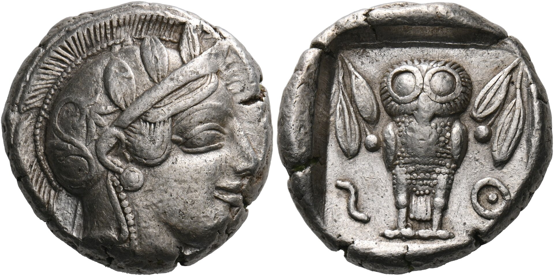 The style does not look Athenian too much, thus an imitation. There is a circular incuse countermark on Athena's cheek, they probably understood this circle as the Phoenician letter 'ayin, which is the initial of 'Aza (Gaza) in Phoenician. But this attribution remains hypothetical. After all, it's just a circular incuse countermark !