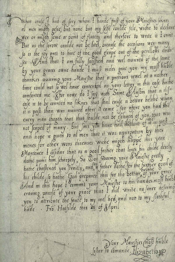 Just passing interest: Elizabeth I was an accomplished Calligrapher - as a young princess she was tutored by Roger Ascham - a renowned British scholar who did much to introduce Italian Renaissance cultural influences to Britain. Ascham was himself an accomplished Calligrapher.