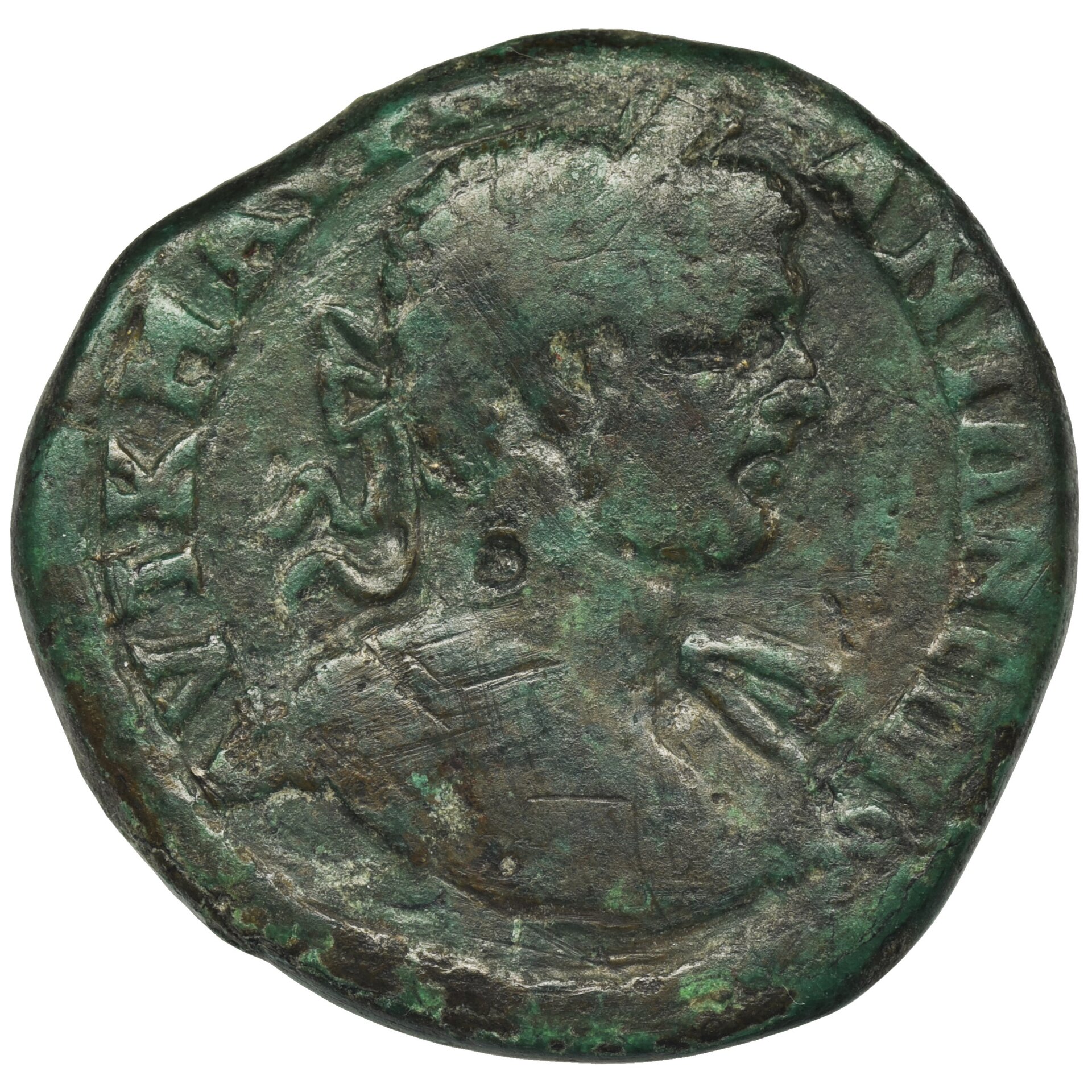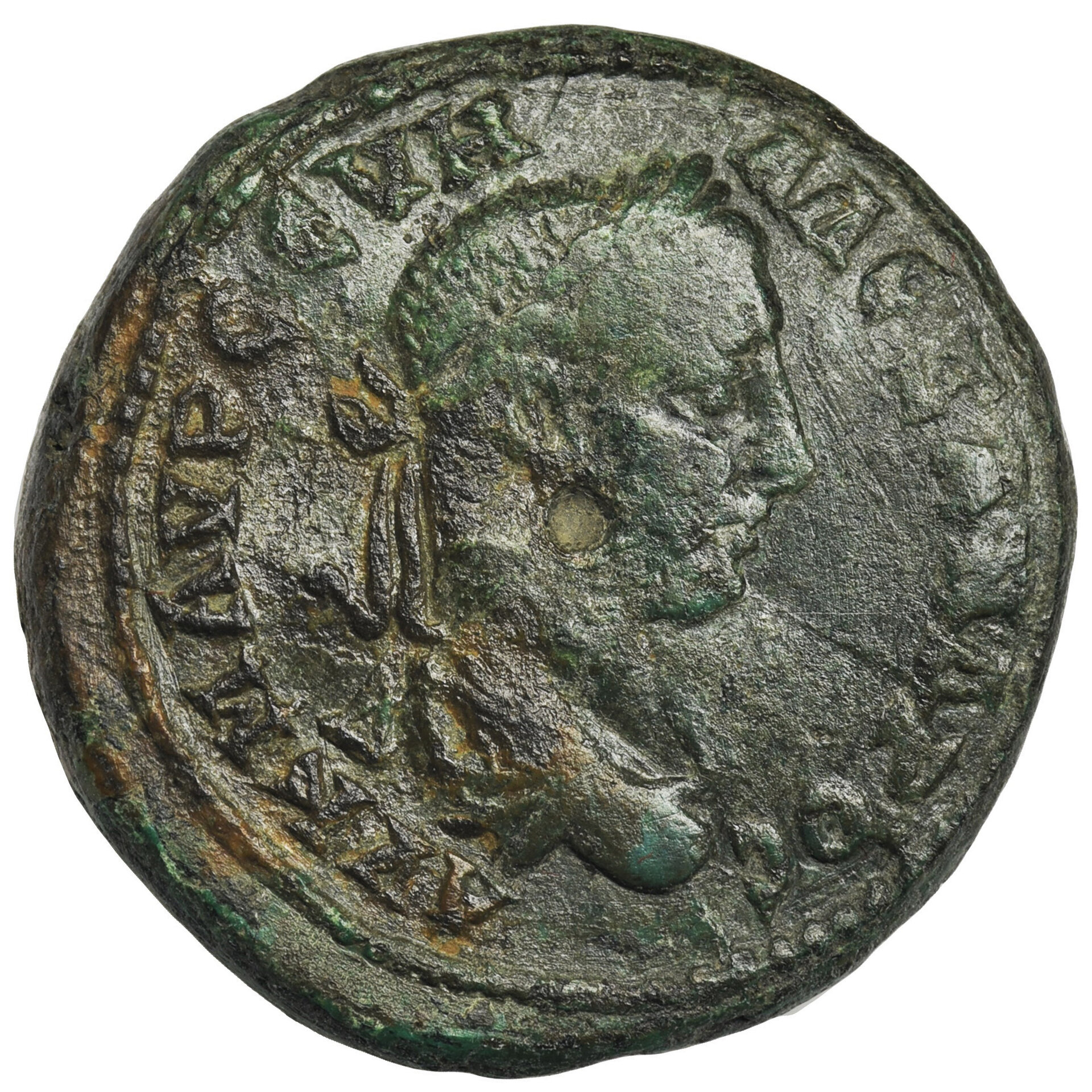 Hints on a couple others: #1 reads AVT K OΠEΛΛIOC CEVH MAKPEINOC on the obverse and VΠ ΠONTIANOV MAPKIANOΠOΛITΩN on the reverse. #2's inscription on the obverse reads counter-clockwise. From 5:00 to 2:00 it reads ΚΛΑVΔΙΟΣ. The reverse reads EΠΙ ΜEΛΙΤΩΝΟϹ ΑϹΚΛΗΠΙΑΔΟΥ (name of the magistrate) ΚΑΔΟΗΝΩΝ (name of the city). #4 reads VT K M AVP CЄVH AΛЄΞANΔPOC on the obverse and features Apollo with patera and branch. I can't read the reverse inscription, but the ligature Ȣ (short for OV) appears several times. I suspect the name of a magistrate is on the reverse. In style, it looks like it comes from the Balkans, not Turkey.