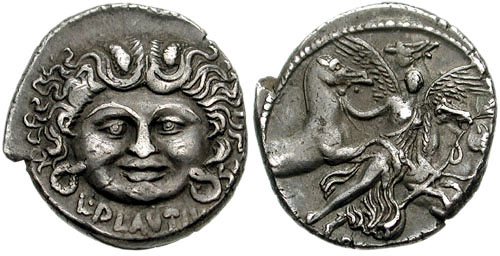 Not showing anything that hasn't already been shown upthread, but I really love the artistry on the two coins below. ROMAN REPUBLIC AR Denarius. 4.03g, 18mm. Rome mint, 47 BC, L. Plautius Plancus, moneyer. Crawford 453/1c; CRI 29a; Sydenham 959b. O: L.PLAVTIVS, facing mask of Medusa with disheveled hair. R: Aurora flying right, holding a palm branch and conducting the four horses of the Sun; PLANCVS below. ROMAN REPUBLIC AR Denarius. 4.03g, 18.8mm. Rome mint, 64 BC. C. Hosidius C.f. Geta, moneyer. Crawford 407/2. O: Draped bust of Diana right, wearing stephane, earring, and double necklace of pendants; bow and quiver over shoulder; III VIR down left, GETA down right. R: Calydonian Boar standing right, pierced by spear and harried by hound below; C•HOSIDI•C•F in exergue. From the Collection of a Swiss Gentleman Whose Wife Wouldn't Let Him Keep His Coins When They Moved