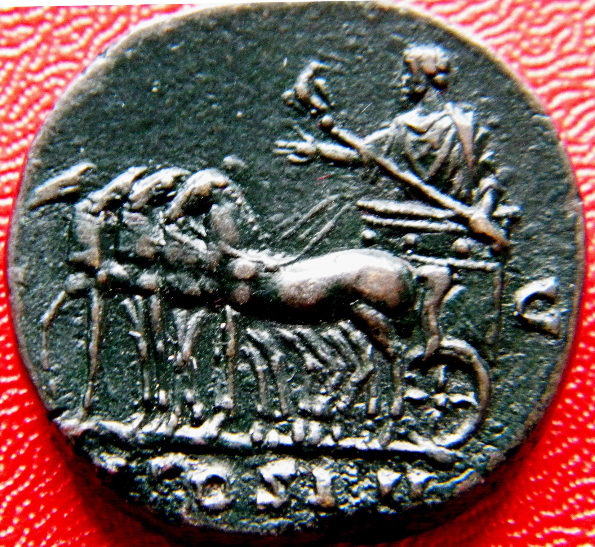 The famous triumphal parades through the city, that celebrated Rome's greatest victories against its enemies, were meant as the highest honor bestowed upon a victorious general.This quasi religious ritual was adopted from the early days of the Republic and during the Empire. Naturally this honor was the reflected coins of by triumphant generals and their proud descendant moneyers. During the Empire, several emperors claimed their right to triumph and were represented on their quadriges, pulled by horses or even elephants. These coins are historically interesting, please show yours. -under the Republic: DOMITIA CN. DOMITIVS AHENOBARBVS. Helmeted head of Roma r., curl on l. shoulder; "X" behind; "ROMA" before. Rev..Jupiter driving triumphal quadriga r. holding laurel branch and thunderbolt; [CN DOMI] in exerg.Mint: Rome, 116-115 BC AR D Crawford 285/1; Sydenham 535; Domitia (7. 3.84gr,/19mm. 7h.)nVF., Roma; -under the Empire: ANTONINVS PIVS. Laureate bust r. "ANTONINVS AVG PIVS PP TR P" Rev.: Antoninus in slow quadriga l. In exerg. "COSIIII, each side "S C". Mint: Rome, 145 AD, AE Sestertius, C.319, BMC. 1668. S.1157, RIC 767 (scarce), (30mm. 24.03gr.); CARACALLA. MOESIA INFERIOR, Nicopolis ad Istrum.AD 198-217. Æ (26mm, 12.85 g, 6h). Laureate, draped, and cuirassed bust r. / Caracalla standing in quadriga driven to r. by Victory; soldier leading the procession before, trophy and captives in field above. H&J 8.18.34.4. VF, green patina, Rare