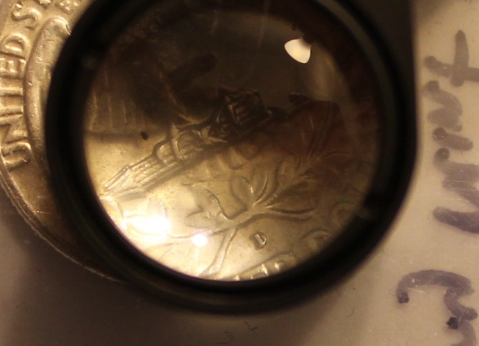 If you compare this mintmark to a normal D mintmark on a 1964-D quarter, you will find that this one appears smaller. I looked in the CPG and found that the mintmarks were significantly larger.