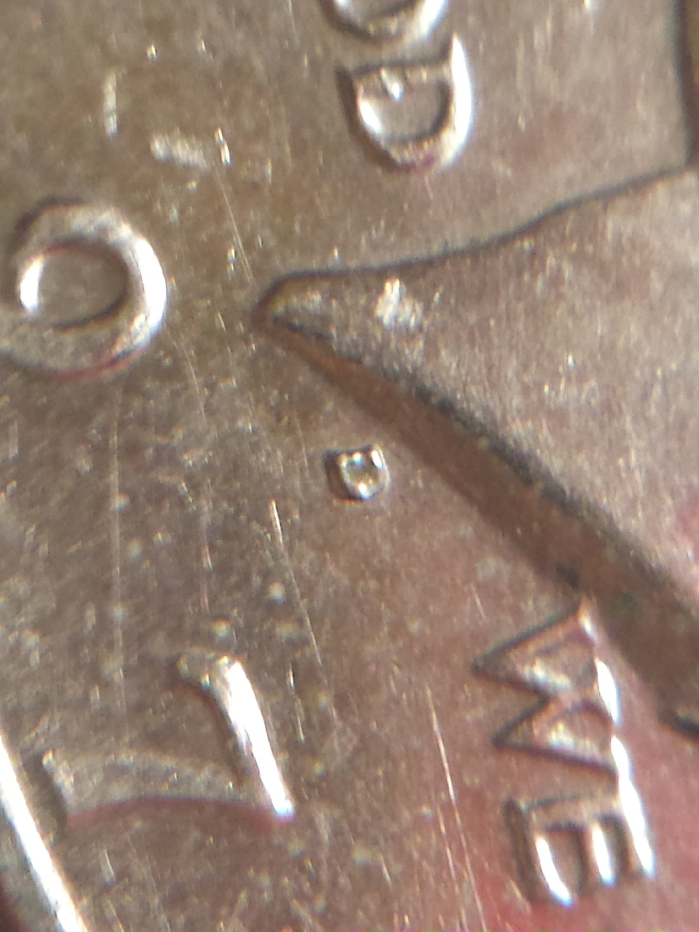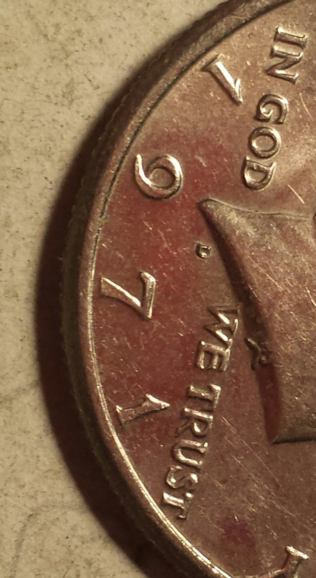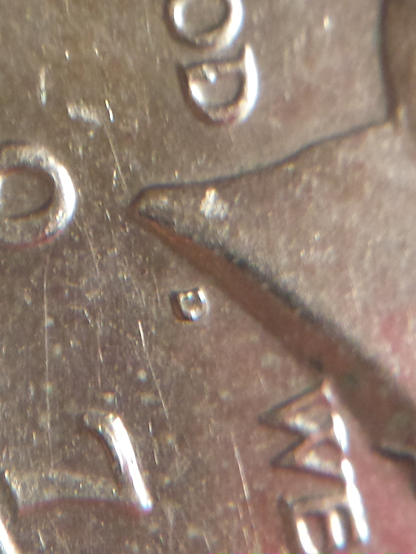 Well I also see the same thing on the inside of the 9 as well. As well as the "D" in GOD and maybe on the "E" in WE.