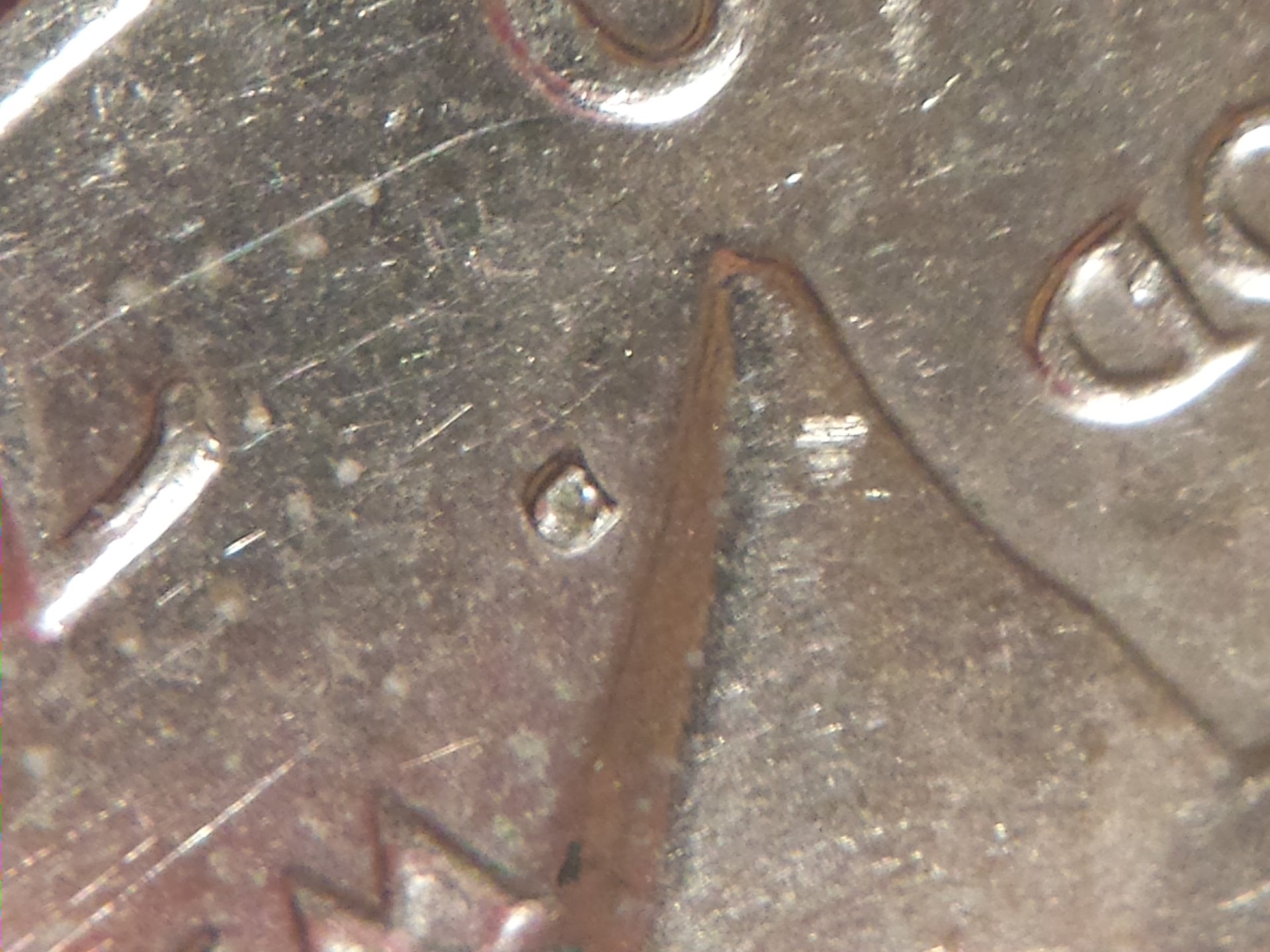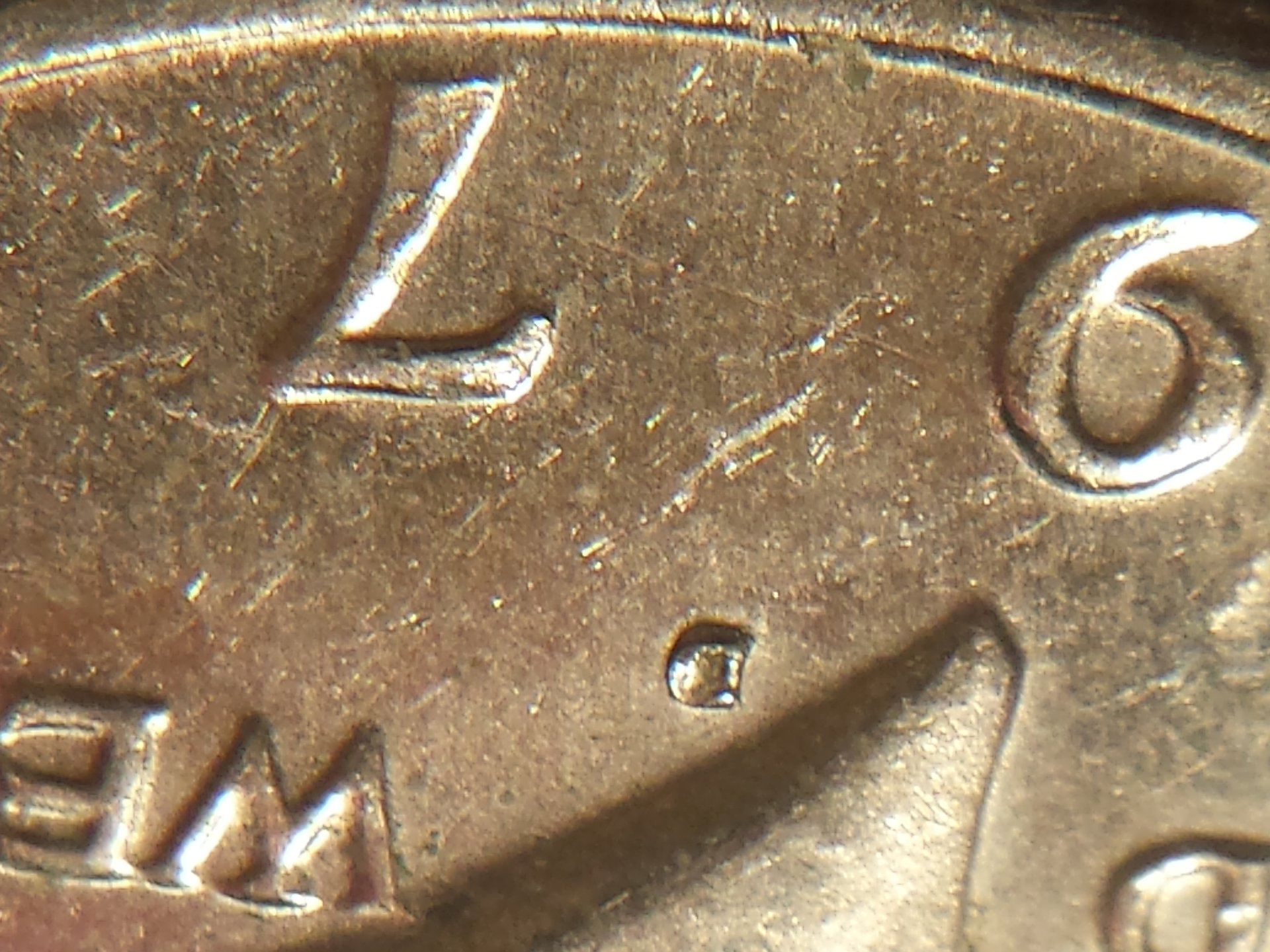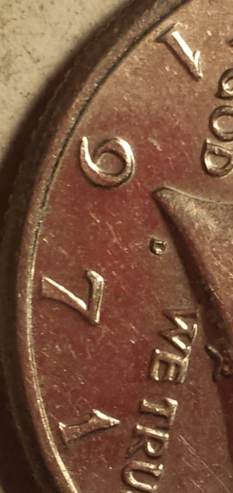 Well I also see the same thing on the inside of the 9 as well. As well as the "D" in GOD and maybe on the "E" in WE.