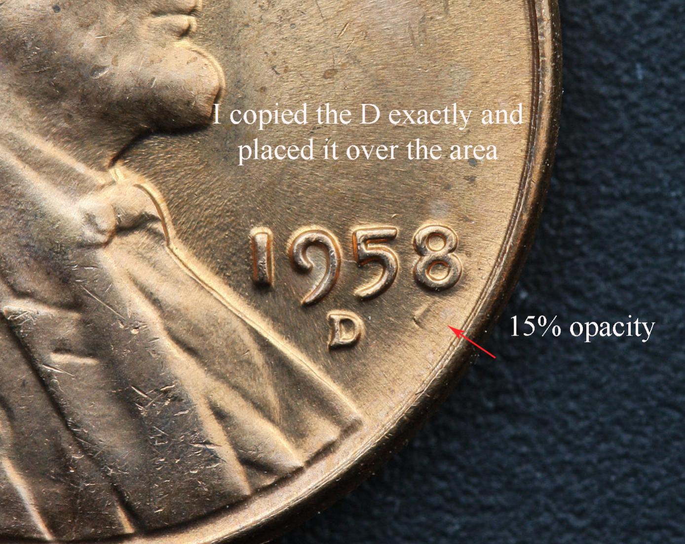 I copied the D mintmark and placed it in the area you believe it could have been re-punched. The first image is your original. The second image is the copied D mark over the area at 15% opacity. The third is at 30% opacity. Seems you could make a case for this...