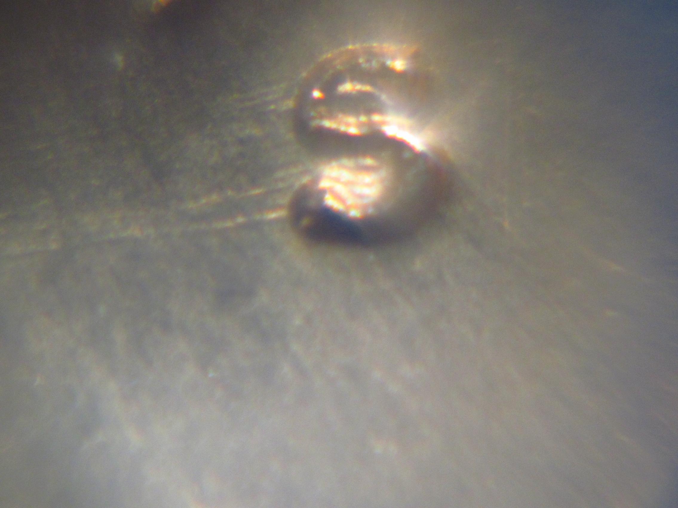 the bottom of the s is tripled, and the top doubled. weird looking mint mark. those are polish lines trailing off to the west.