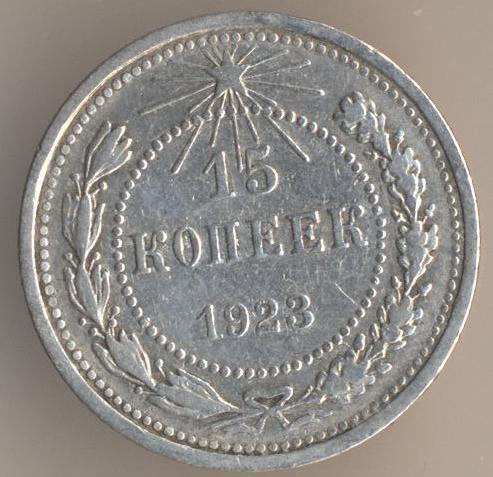 The Russian coins in the early USSR era were 1/2 kopek, 1 kopek, 2 kopek, 3 kopek, 5 kopek, 10 kopek, 15 kopek, 20 kopek, 50 kopek and ruble. The 15 kopek coin was actually a fairly popular denomination, I remember using them in the USSR. The coin that was scarce to find was the 2 kopek, because it was the price of a payphone call.