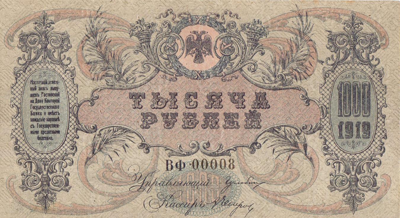 I bought this note on eBay maybe five years ago. It was advertised as having been issued by the White Russians, who were the imperial loyalists who were fighting the communists. When I was bidding on it, another eBay user sent me an email telling me not to bid on it because it was fake since the czar wasn't around in 1919, but I thought he just didn't know his history so I bid anyway and won it. I have always wondered though if this is real or just something someone made in their basement. Does anyone know anything about this?