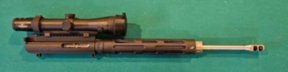 Burris Eliminator laser scope with range finder built in. DPMS high top upper, JP Enterprise Low mass BCG, Free floating handguard, 20" heavy stainless barrel, adjustable gas block and compensator. Another deal I couldn't refuse at $0.25c on the dollar.