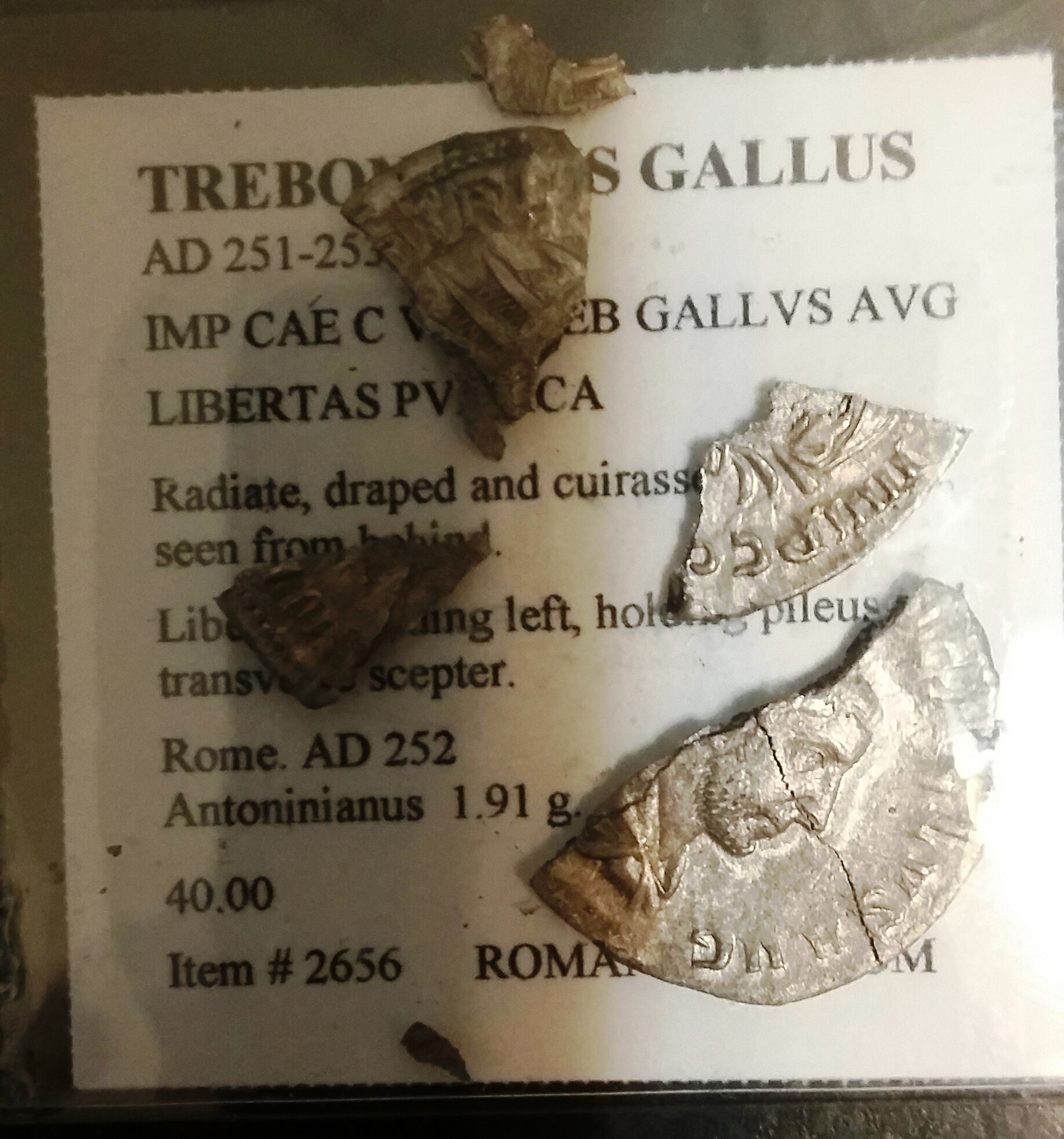 This one wasn't as much of a monetary loss, but sad nonetheless. This Trebonius Gallus Antoninianus didn't survive the post office: